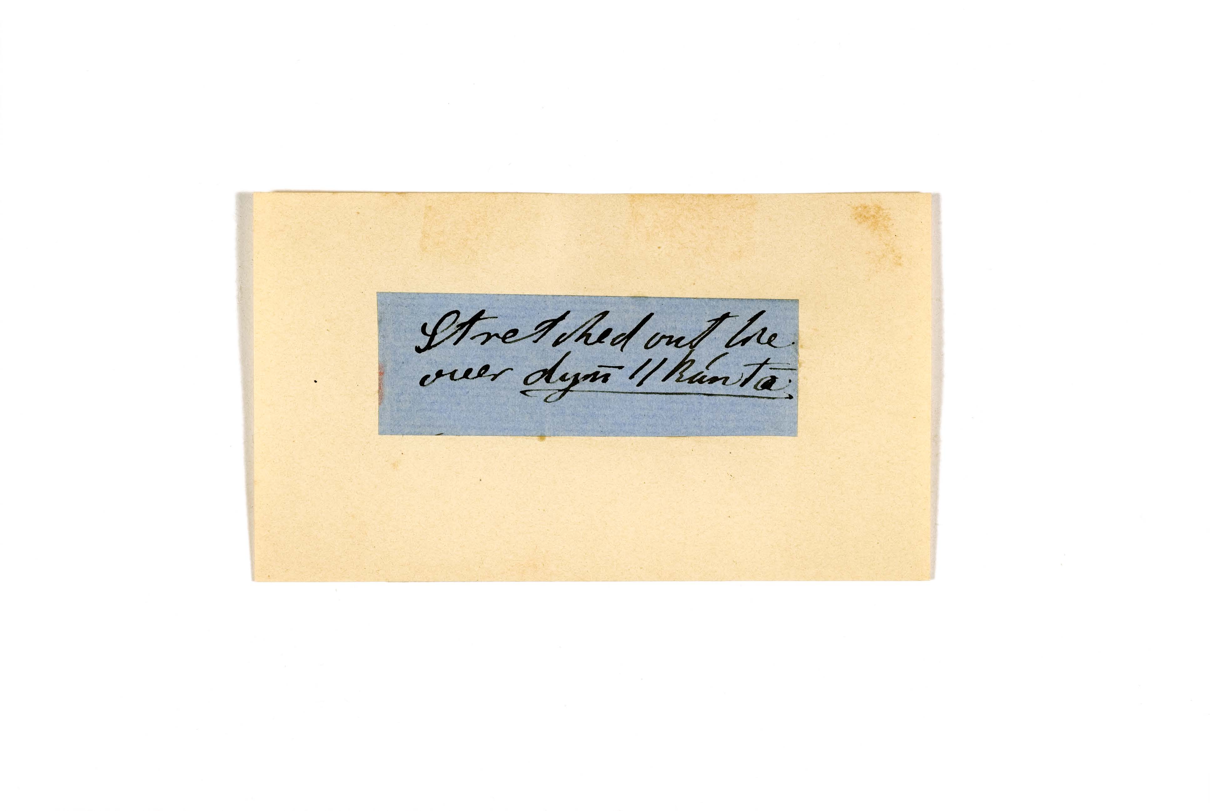 ink on blue paper glued on card