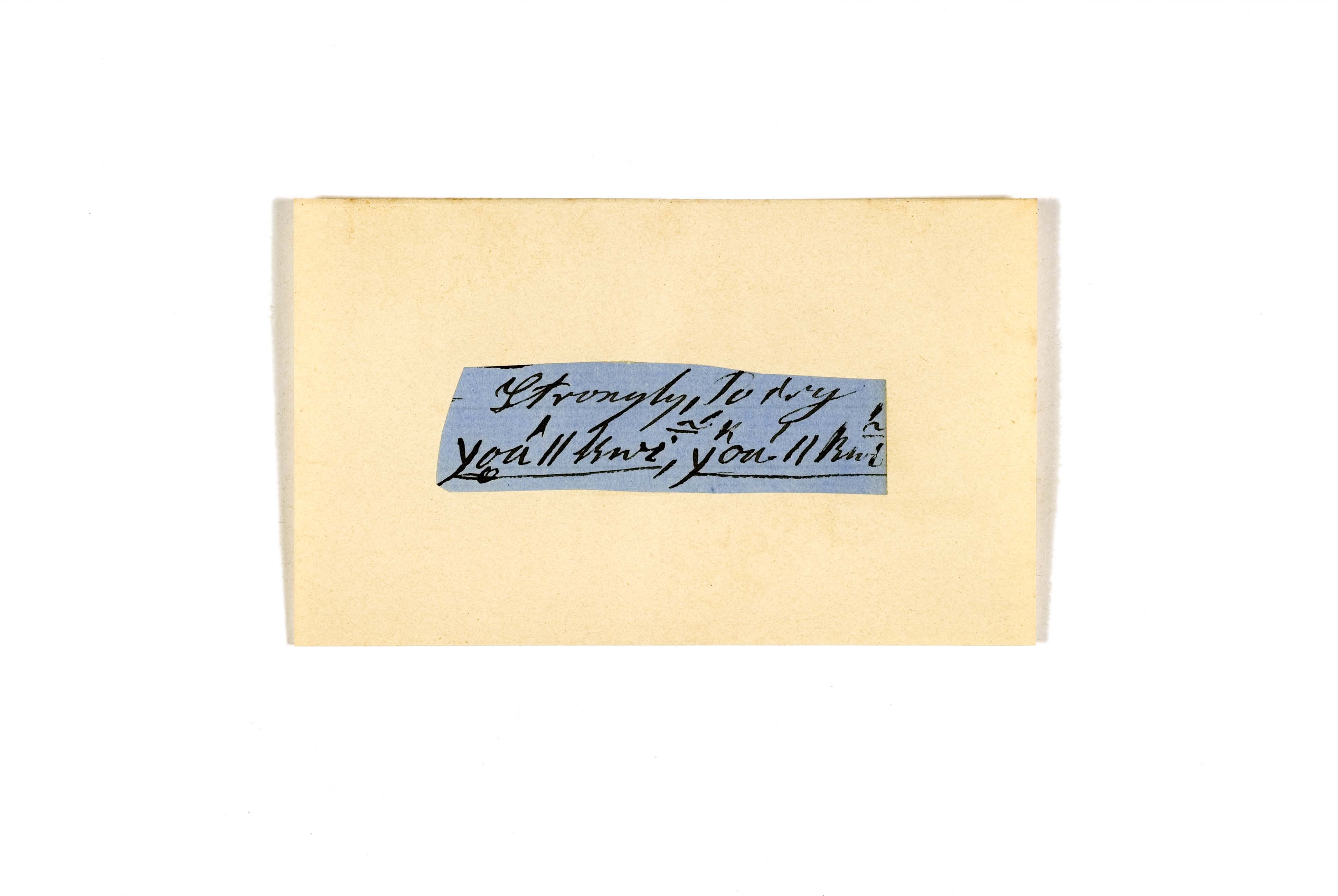 ink on blue paper glued on card
