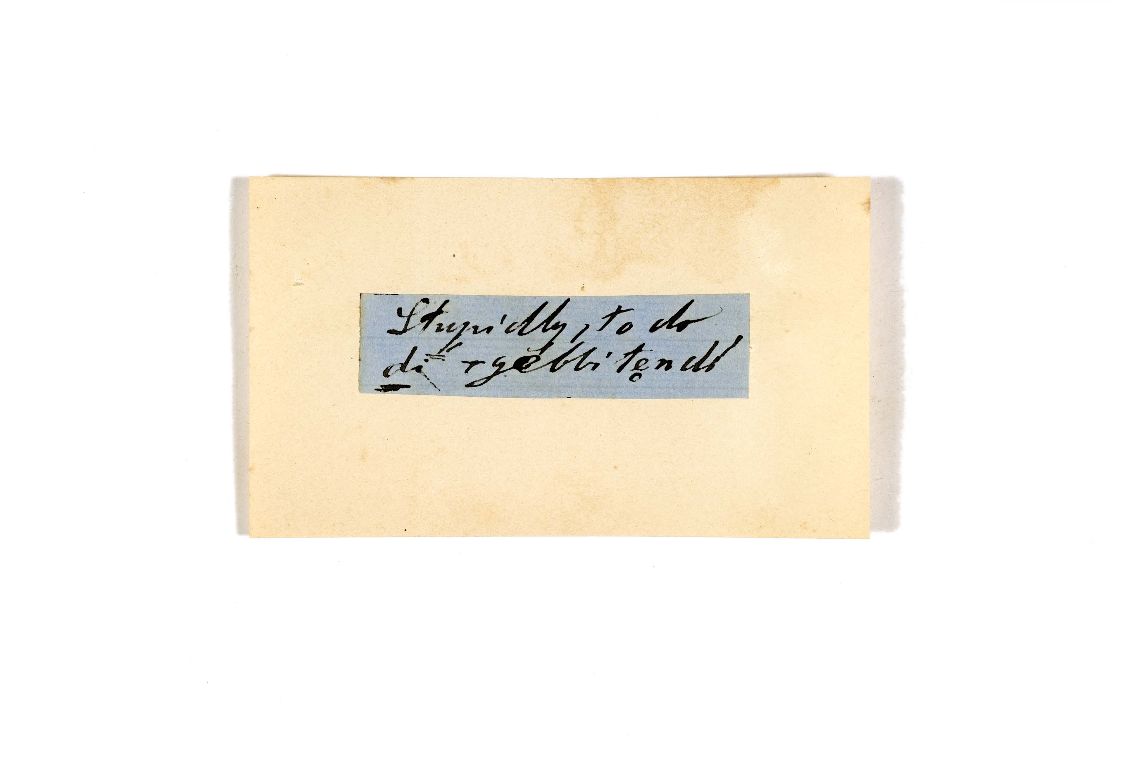 ink on blue paper glued on card