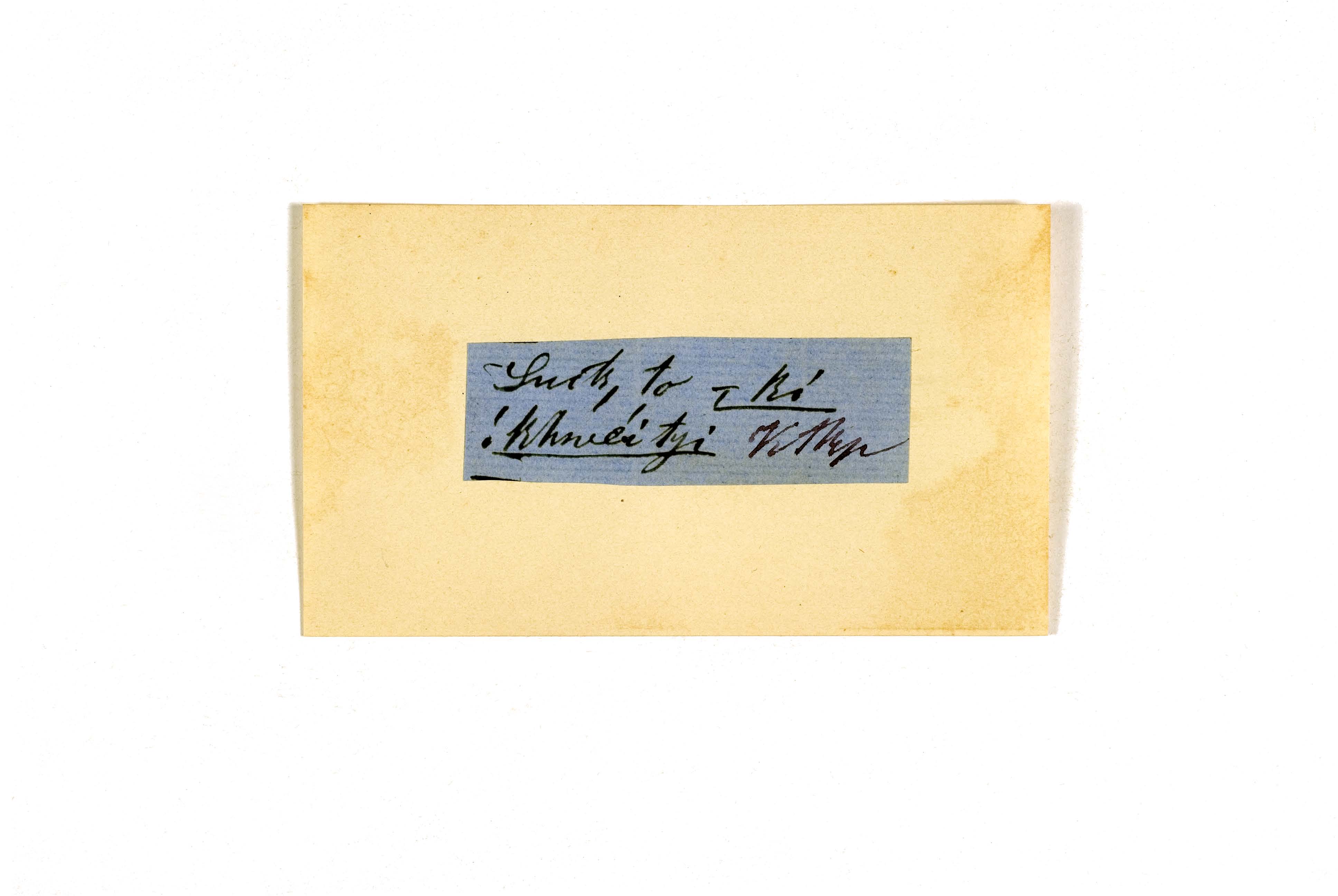 ink on blue paper glued on card