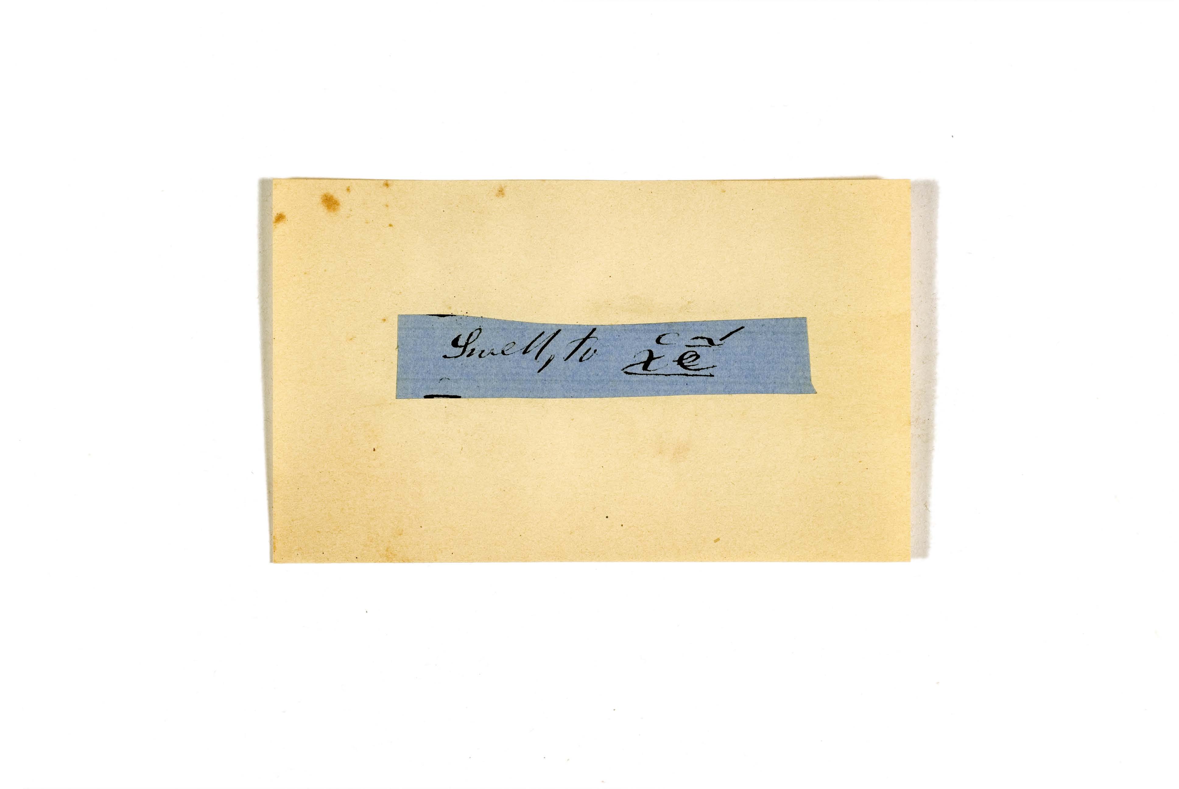 ink on blue paper glued on card