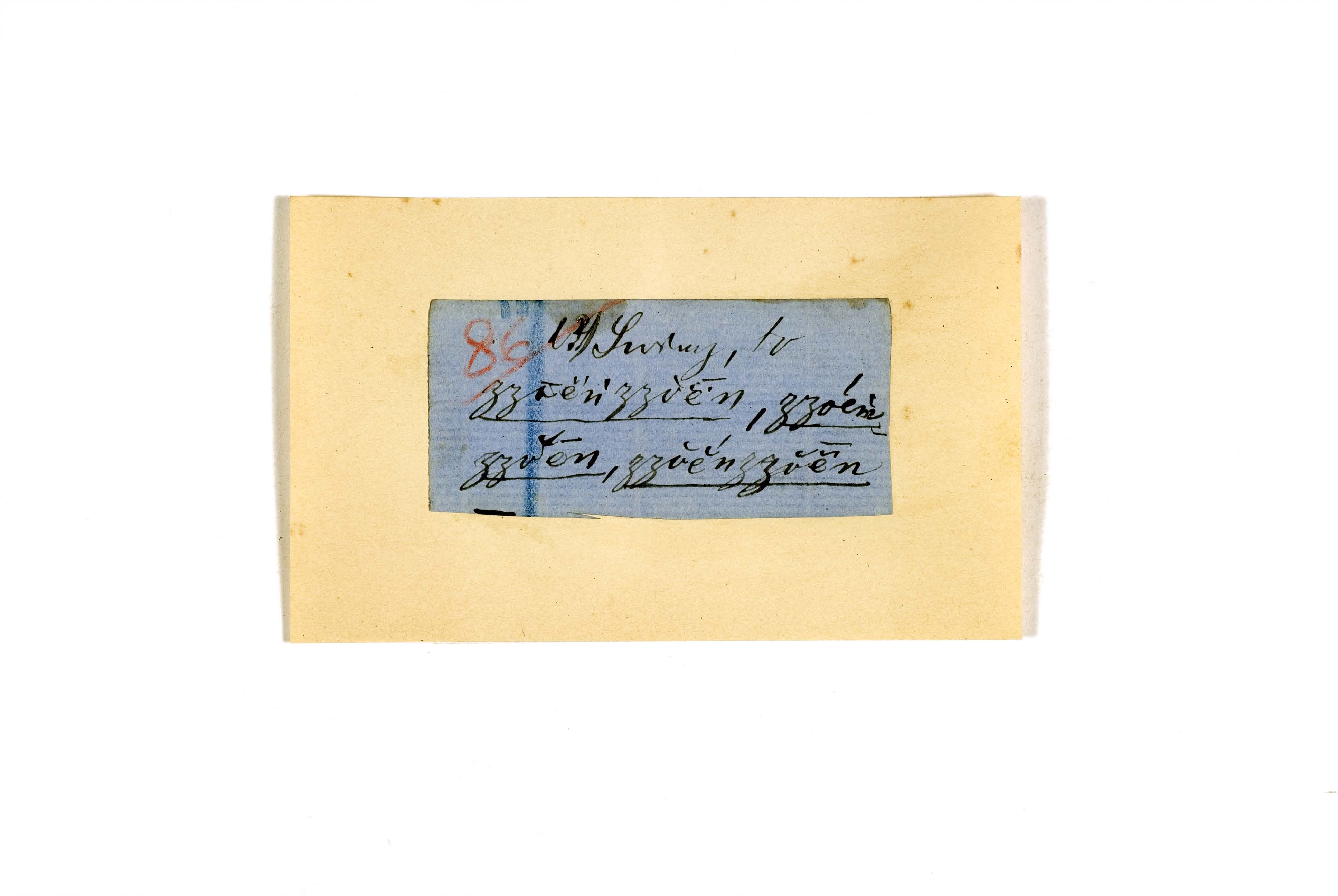 ink on blue paper glued on card