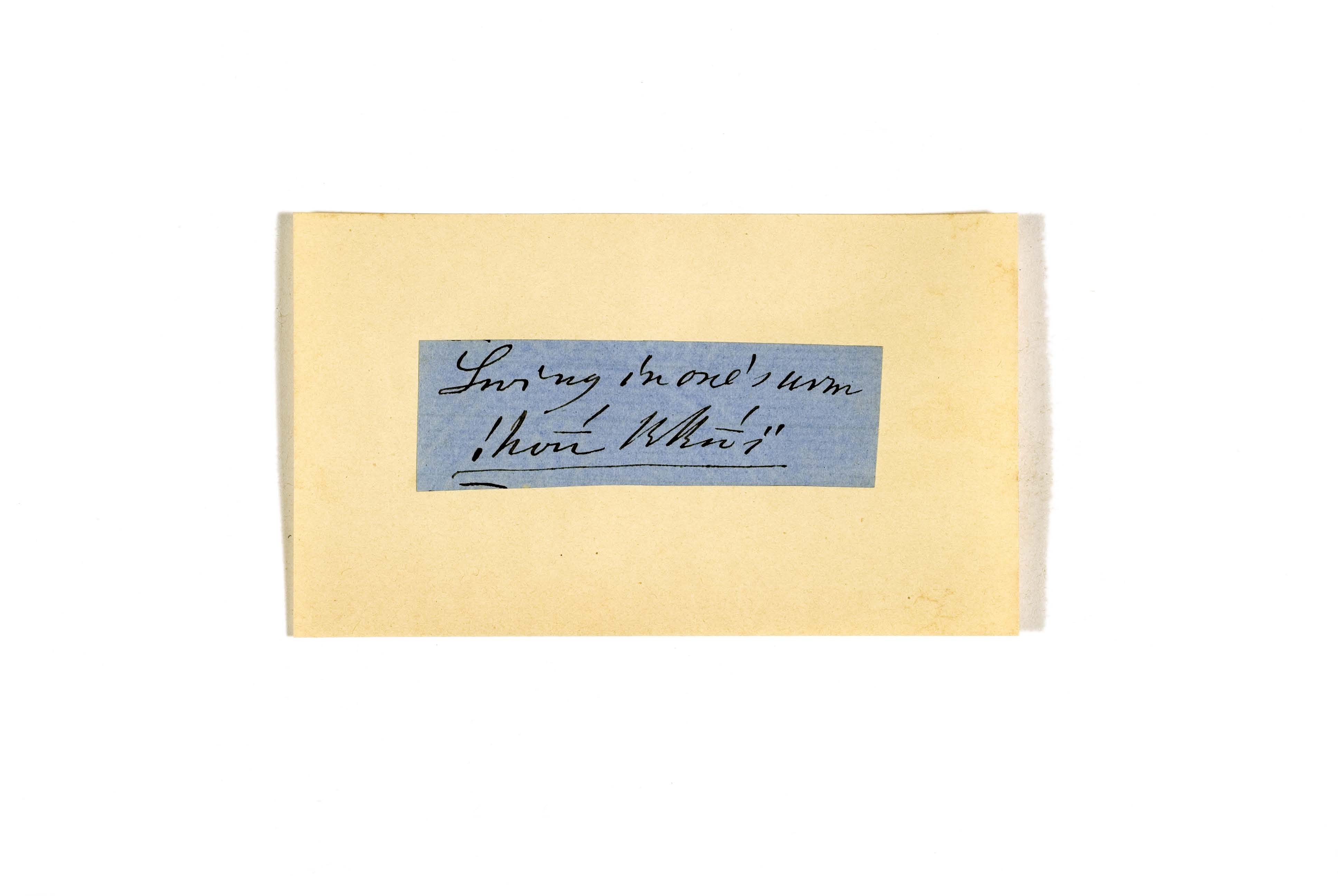ink on blue paper glued on card