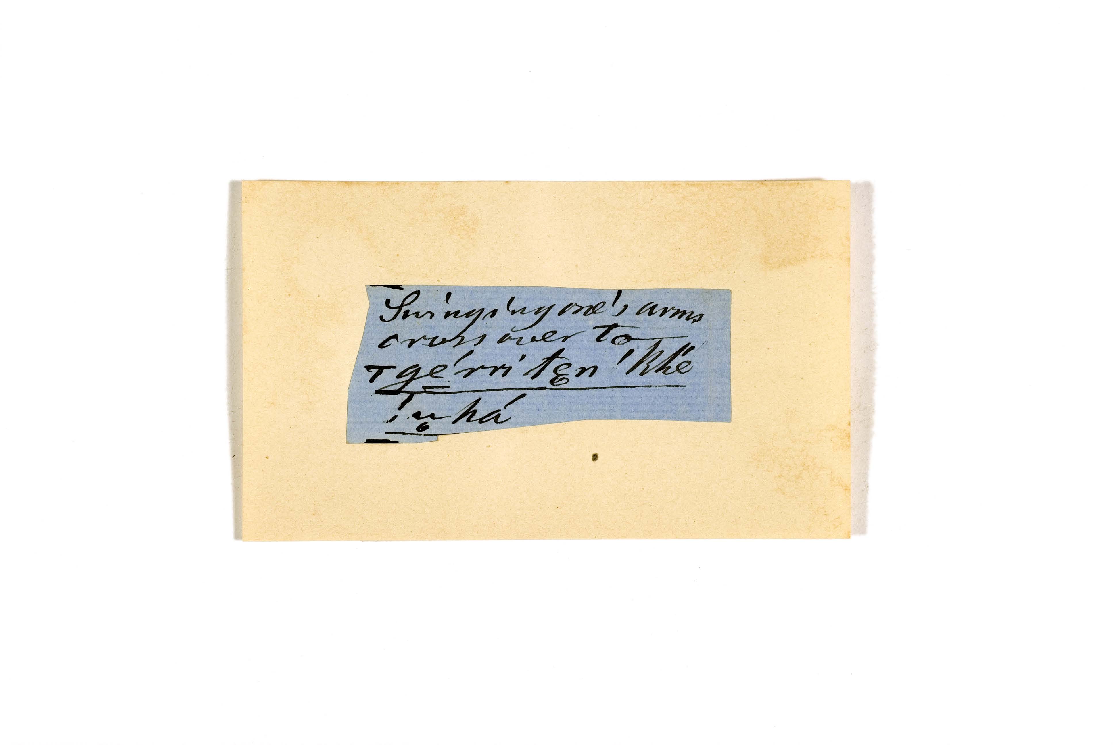 ink on blue paper glued on card