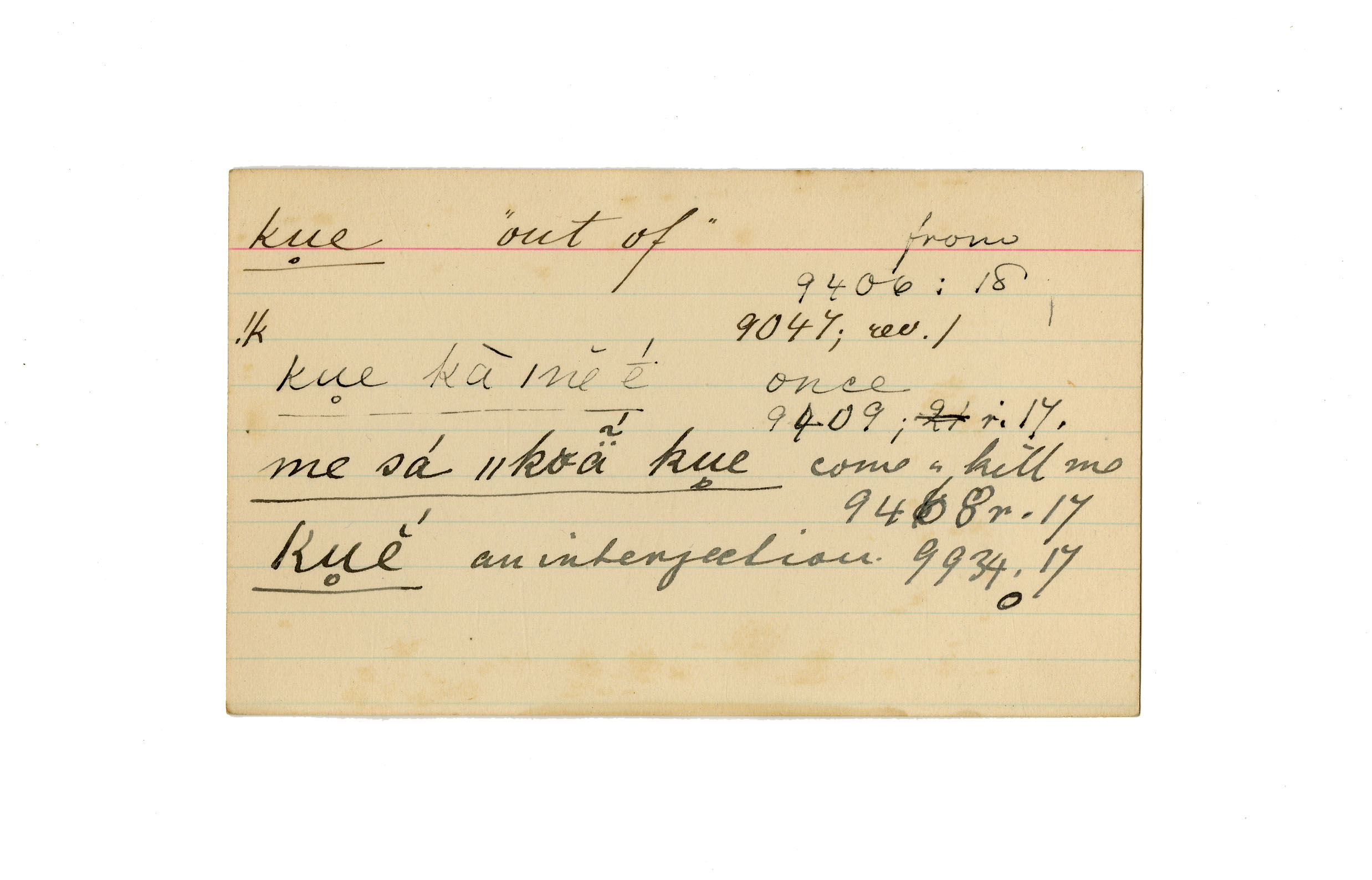 out of, from, once, come and kill me, interjection (an)