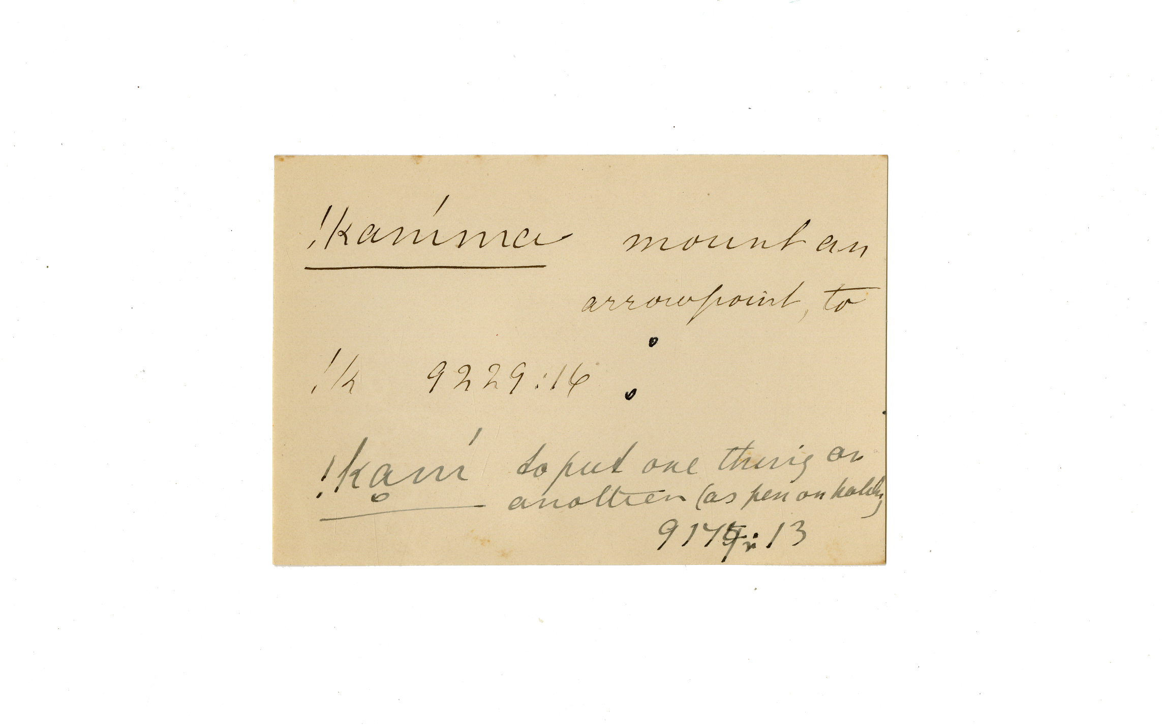mount an arrowpoint (to), put one thing on another (as pen on holder [?] )