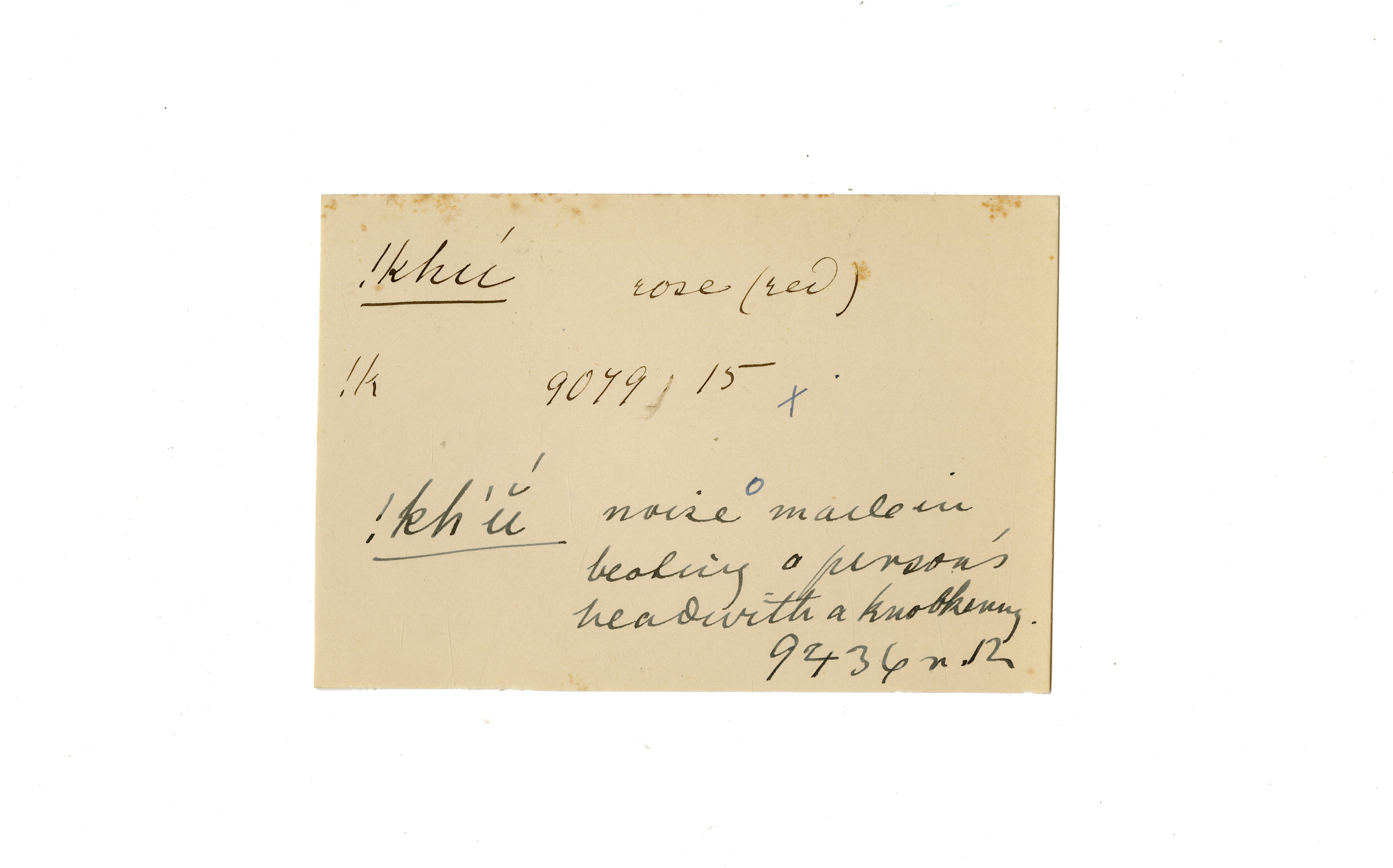 rose (red), noise (made in beating a person's head with a knobkerry)