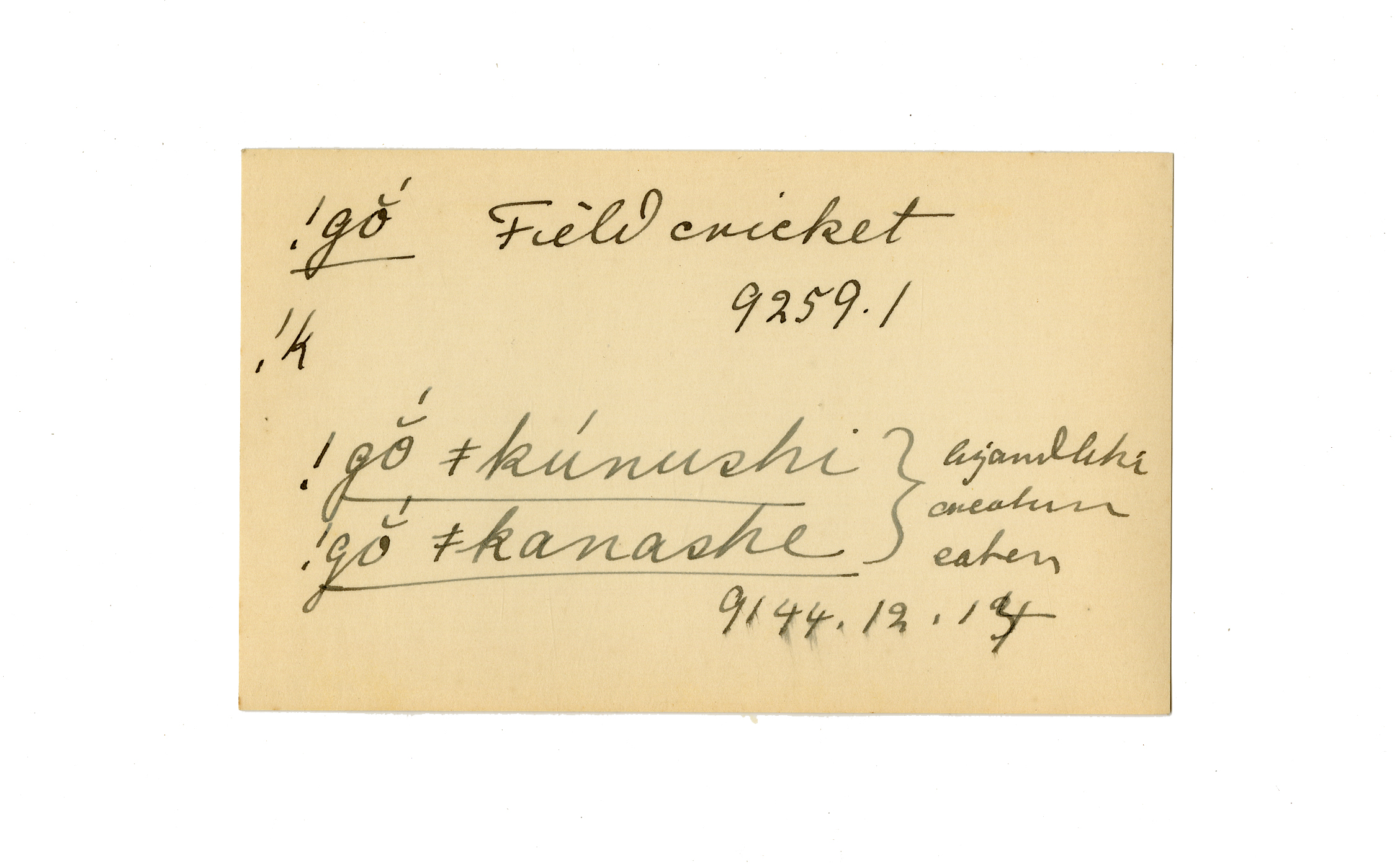 Field cricket, eaten (lizard-like creature), name (lizard-like creature eaten)