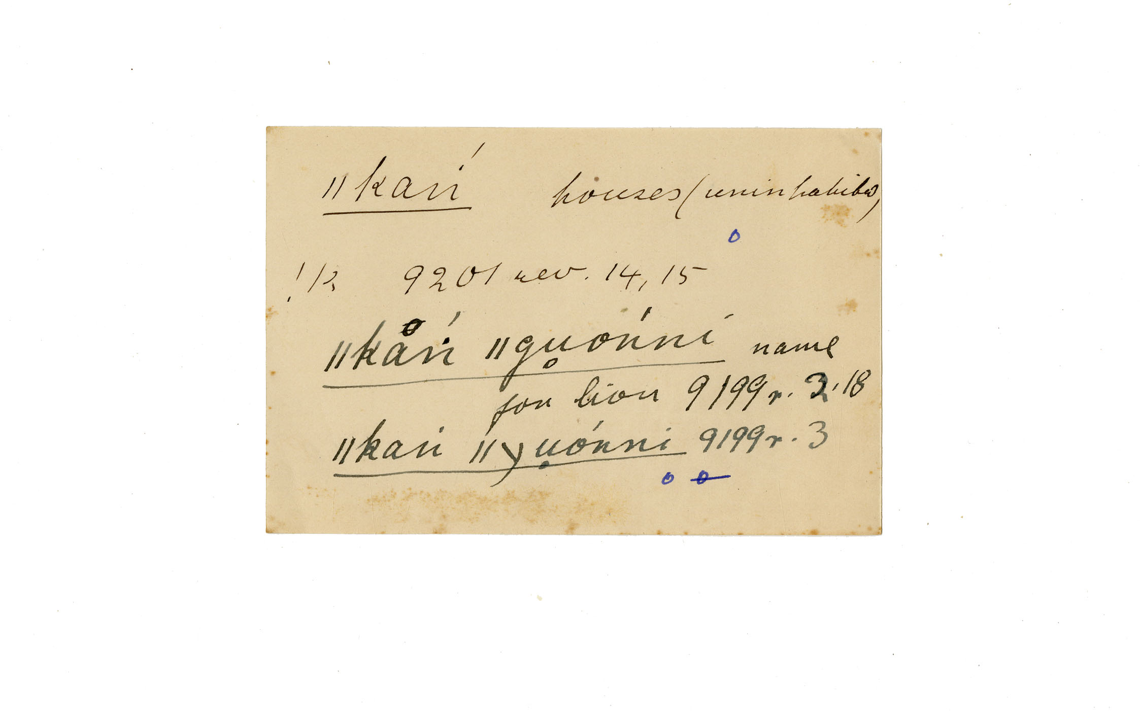 houses (uninhabited), lion (name for), name (for lion)