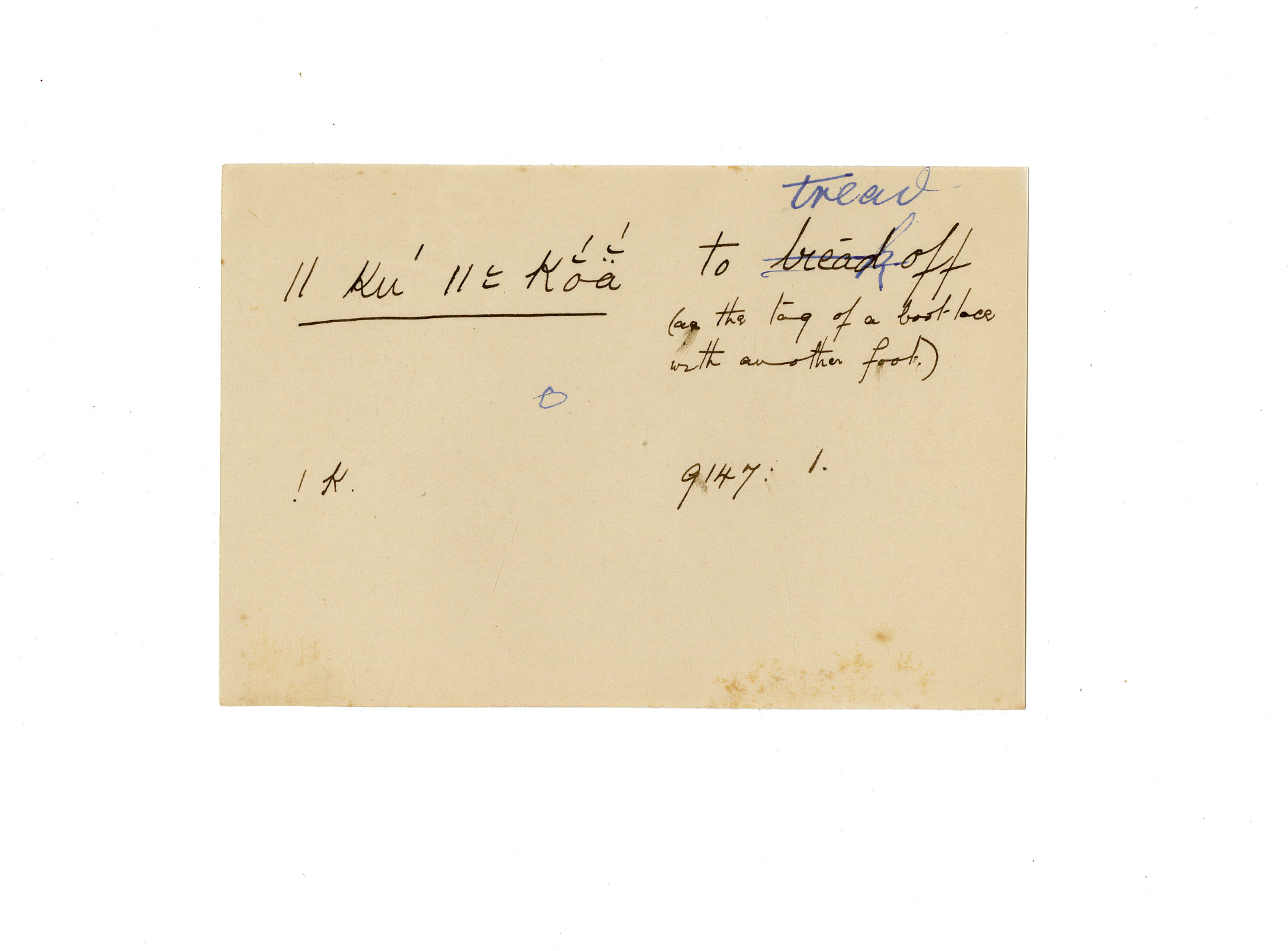 ǁ_340 tread (to) (break off) (as the tag of a bootlace with another foot)