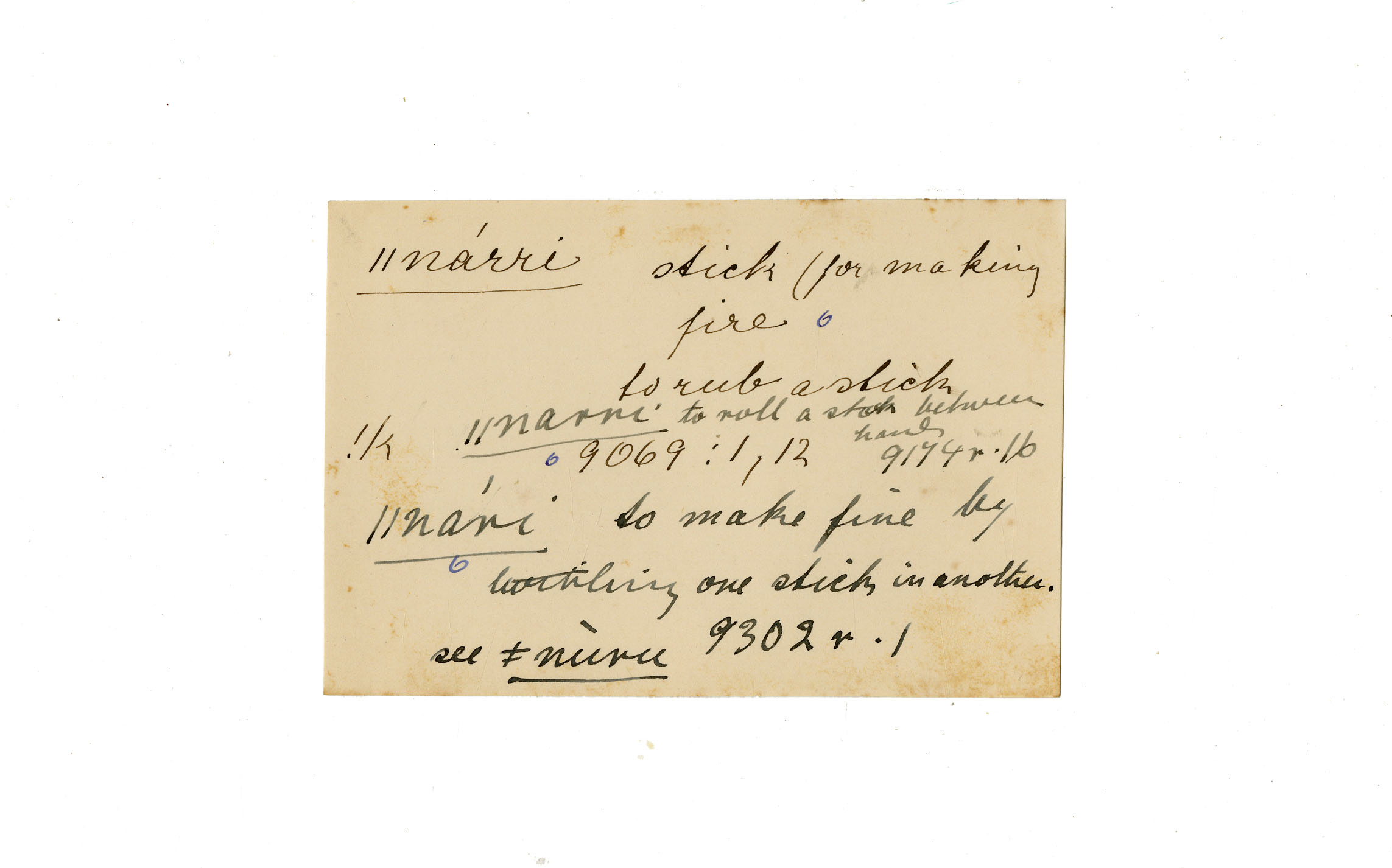 stick (for making fire ), between hands, make fire (by twirling one stick in another )