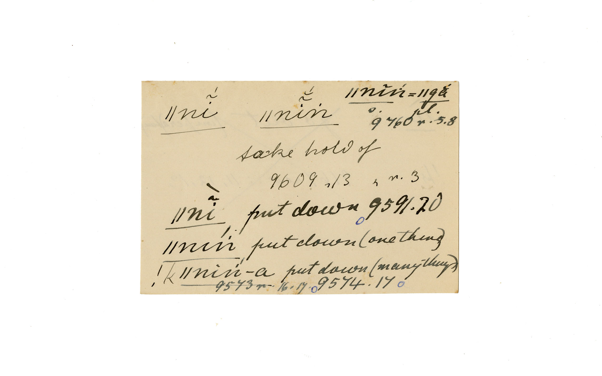 take hold of, put down (one thing )