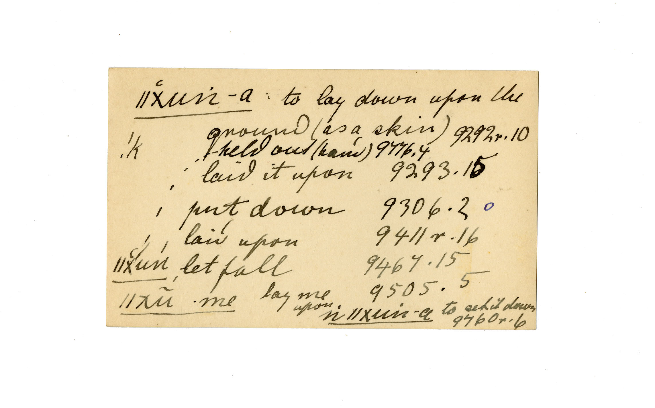ǁ_497 lay down (upon the ground) (to) (as a skin)