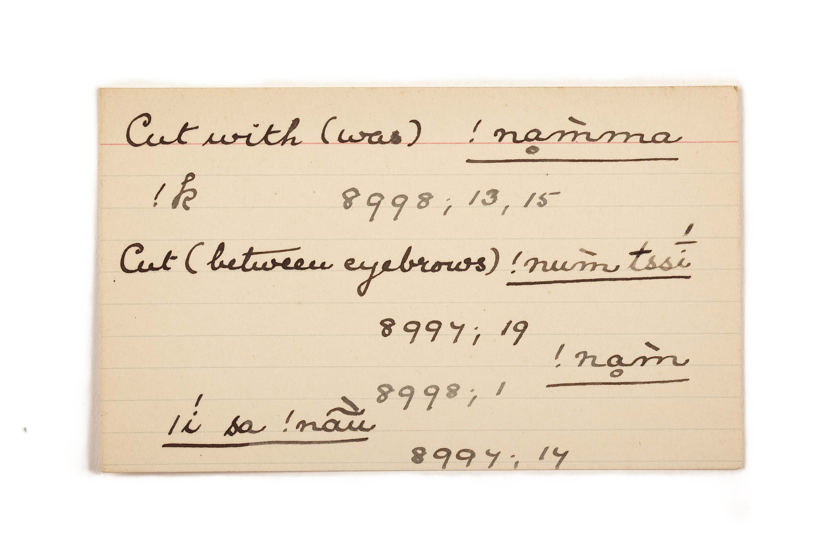 cut with (was), cut (between eyebrows)