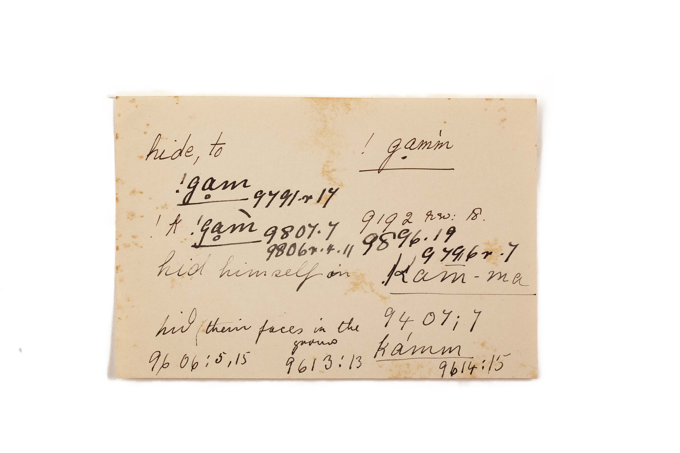 hide (to), hid (himself in), hid (their faces in the ground)