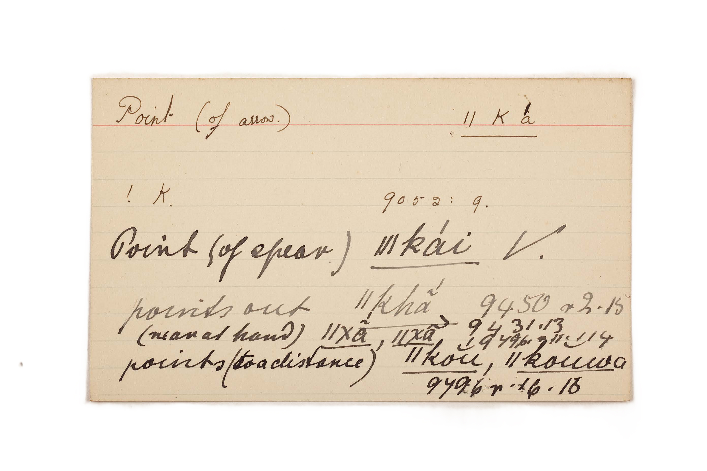 point (of arrow), point (of spear), points out (near at hand), points (to a distance)