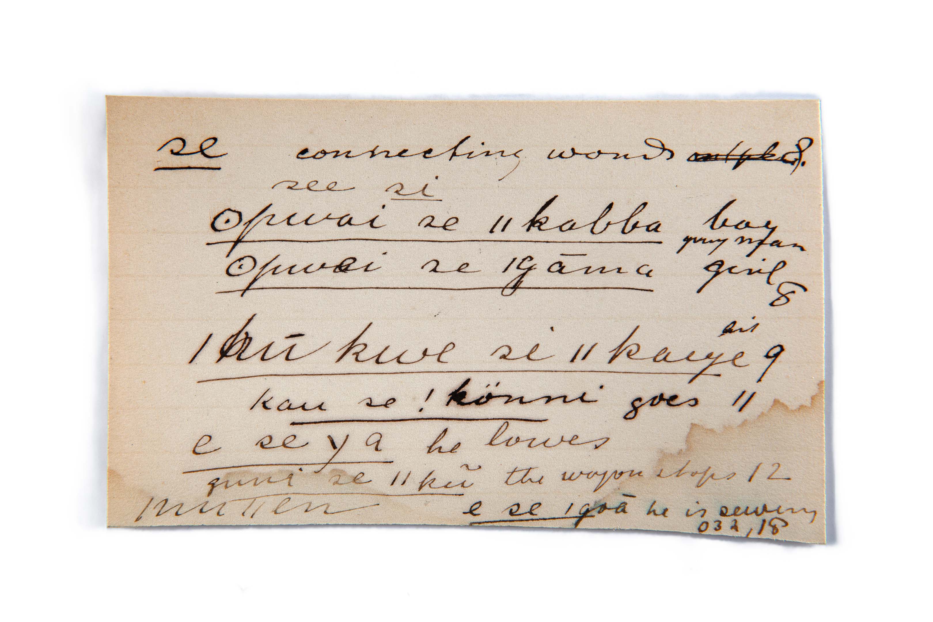 boy, young man, girl, goes, he lowes, stops (the wagon), he is sewing, (connecting words)