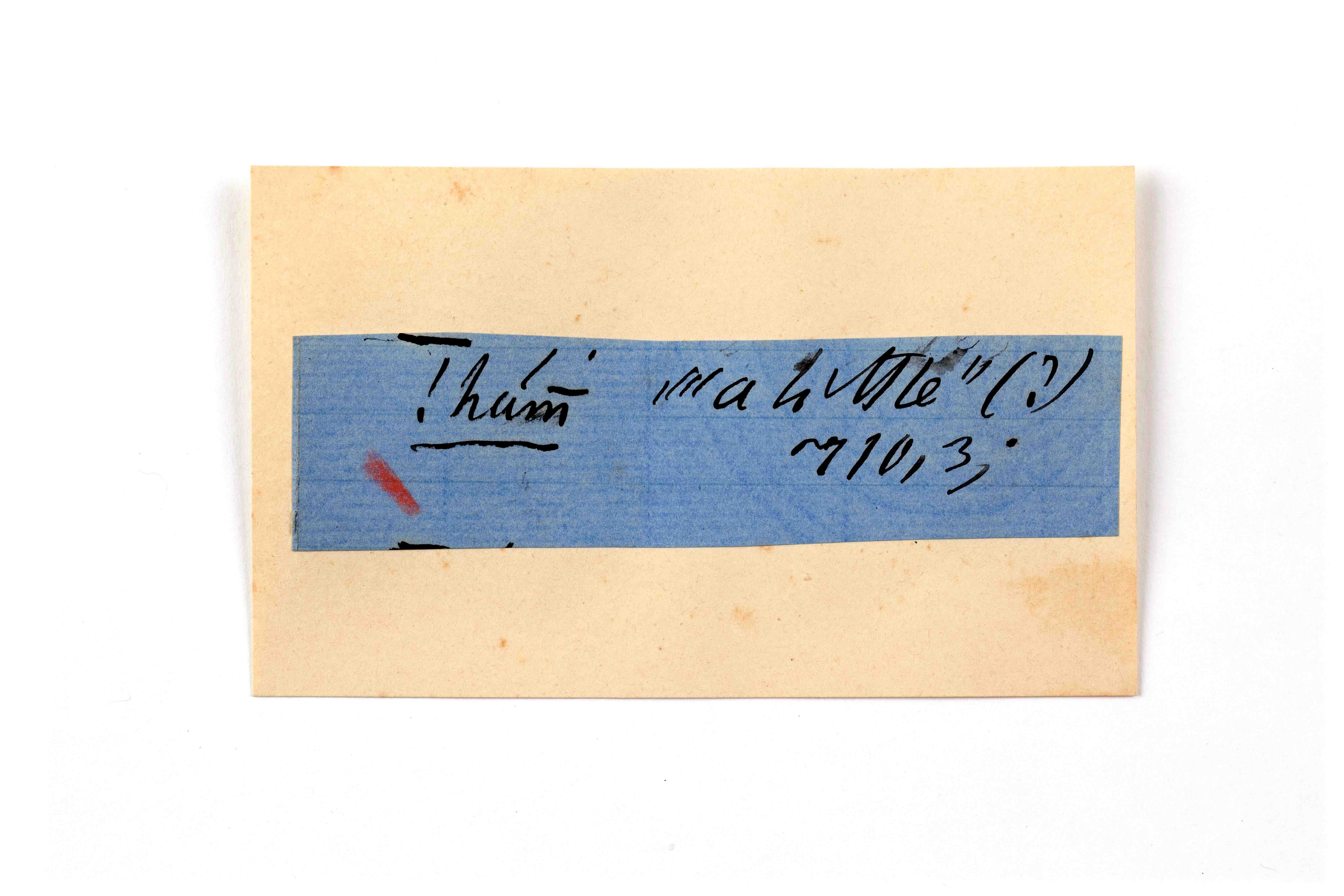 ink on blue paper glued on card