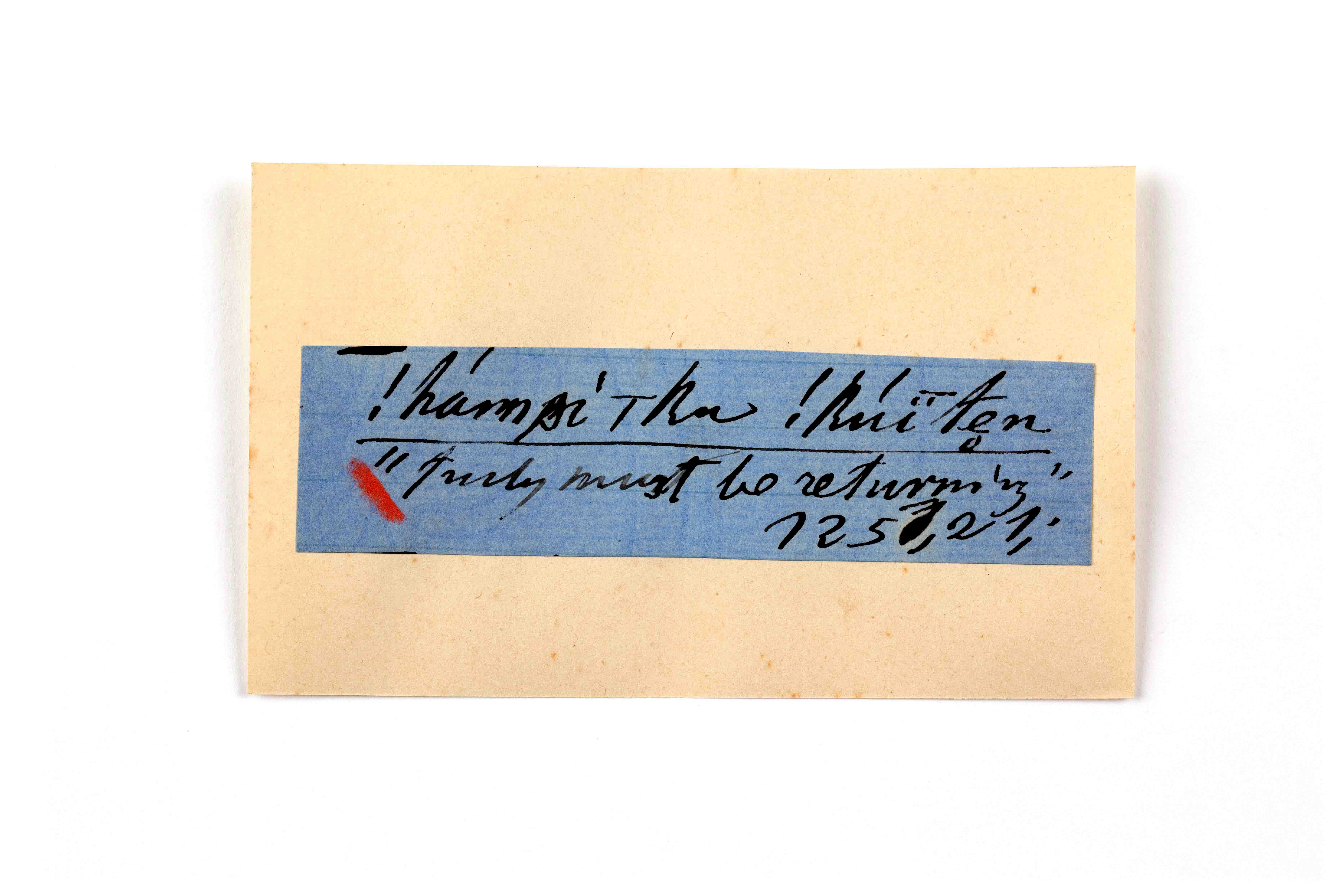 ink on blue paper glued on card