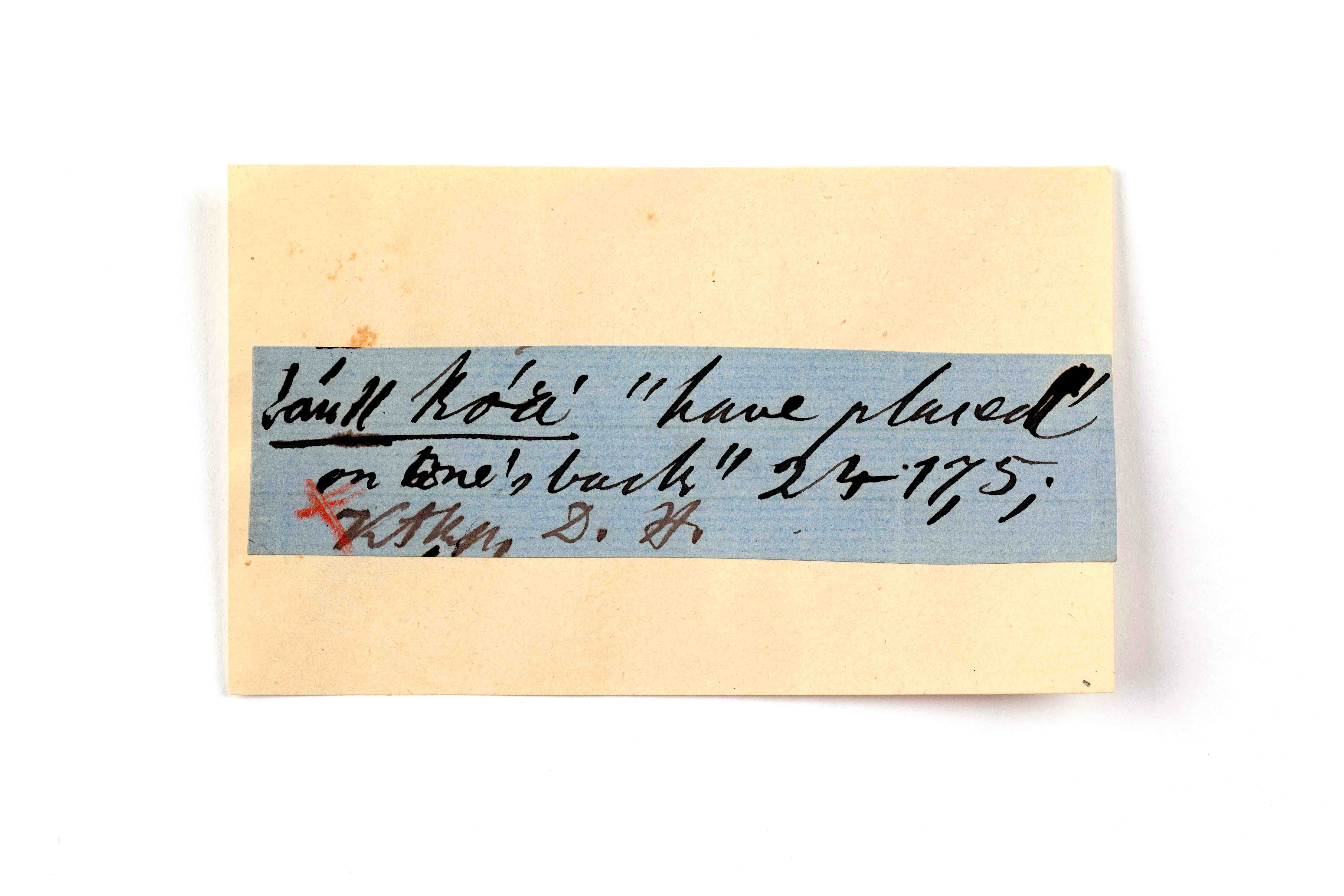 ink on blue paper glued on card