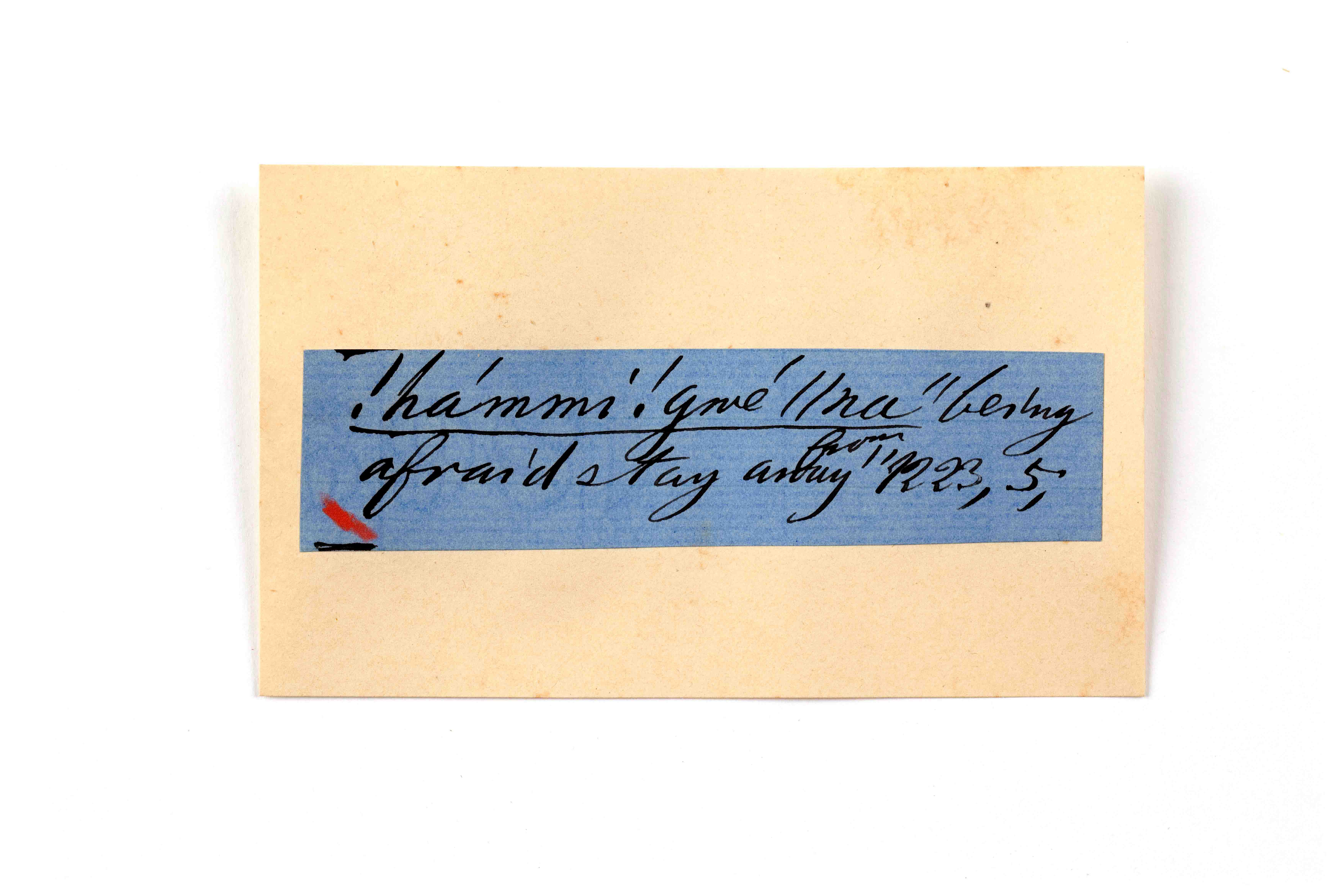 ink on blue paper glued on card