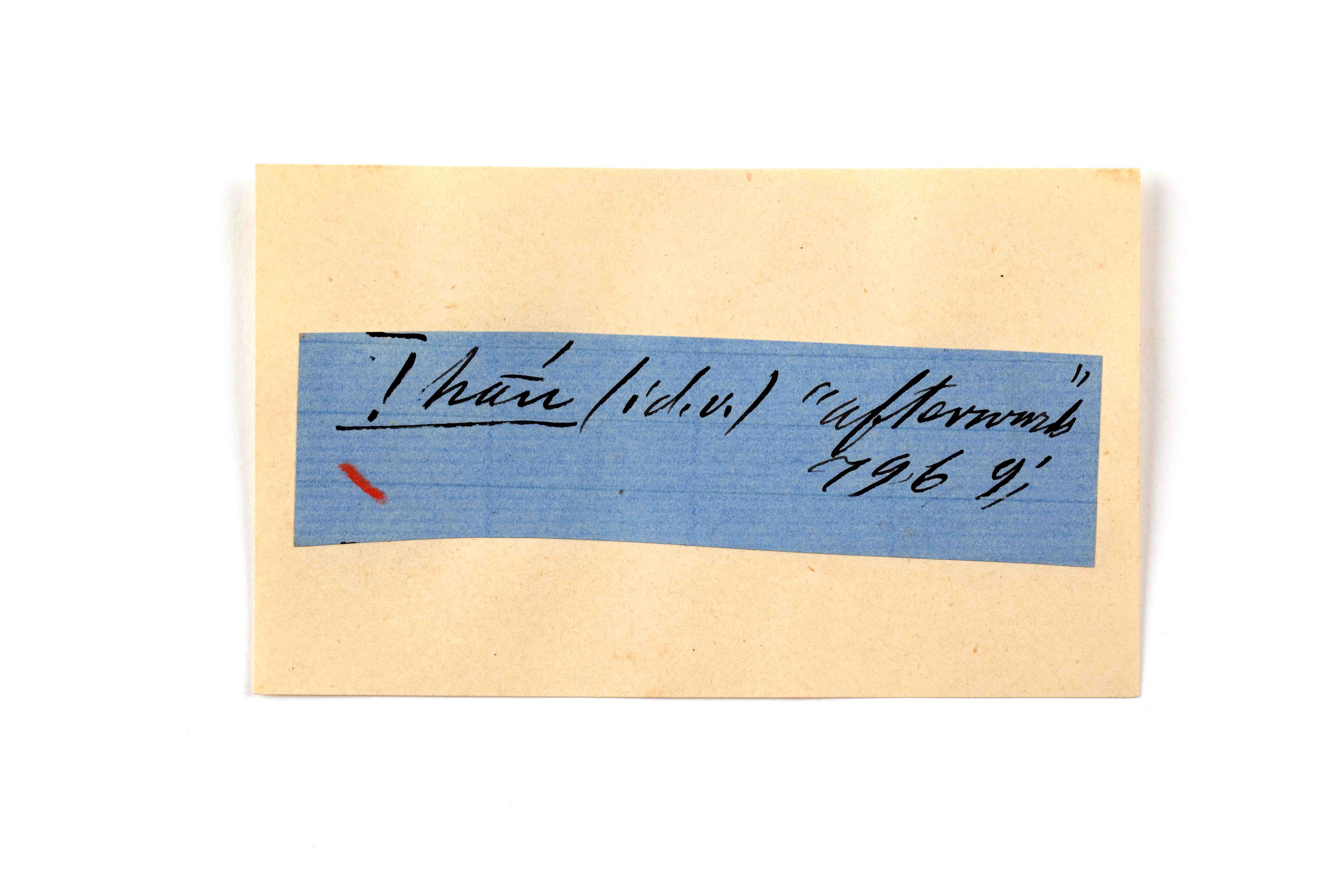 ink on blue paper glued on card