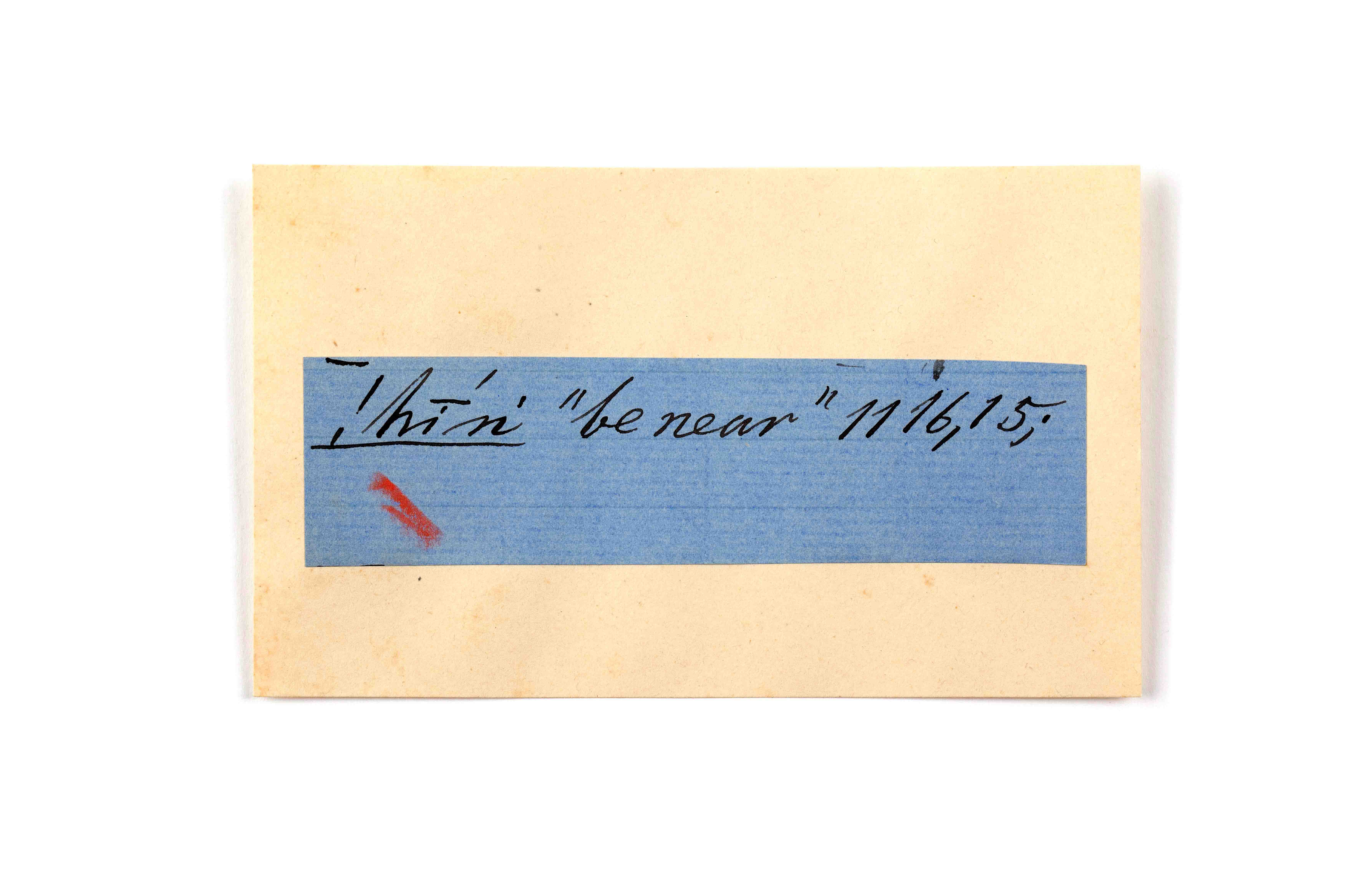 ink on blue paper glued on card