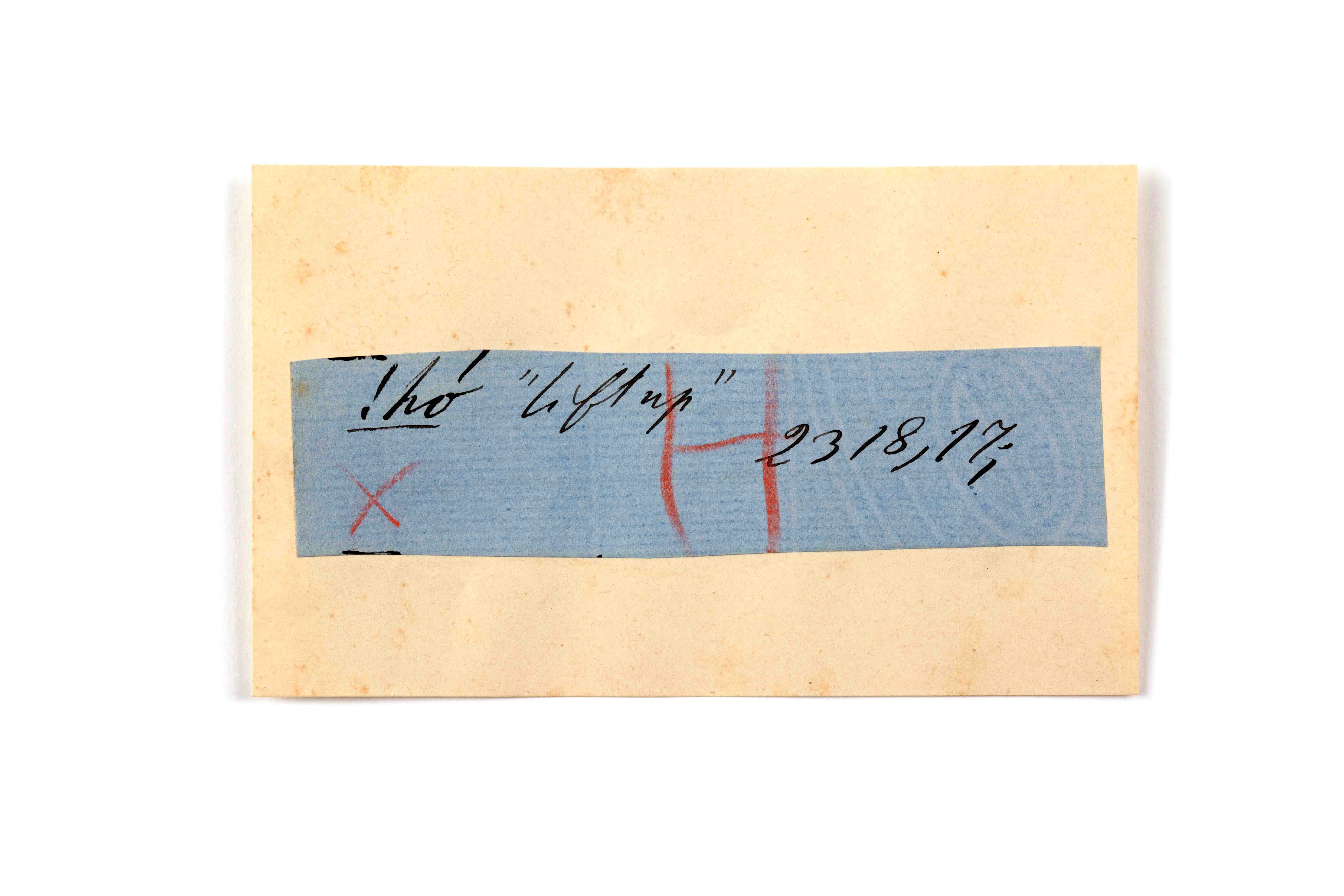 ink on blue paper glued on card