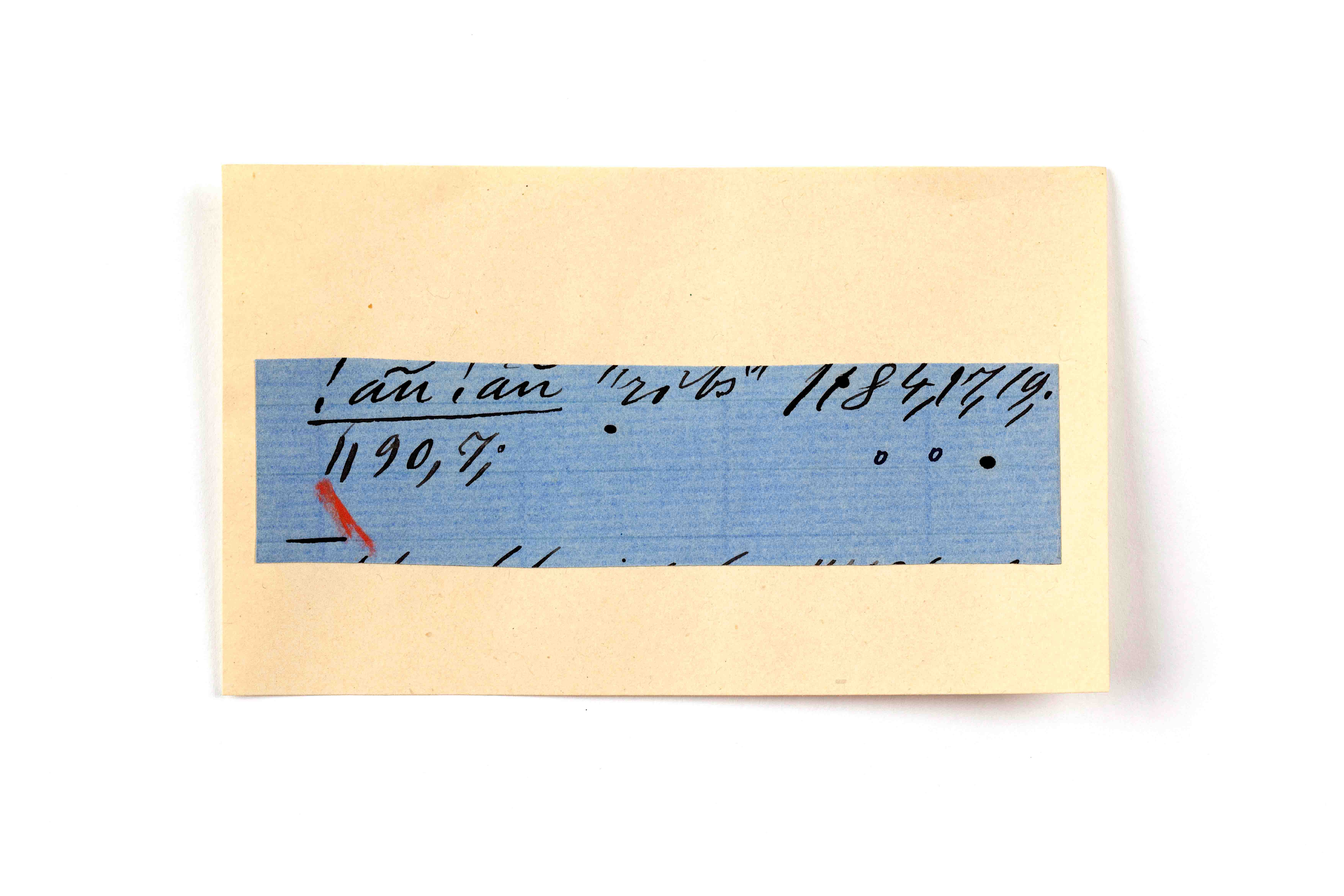 ink on blue paper glued on card