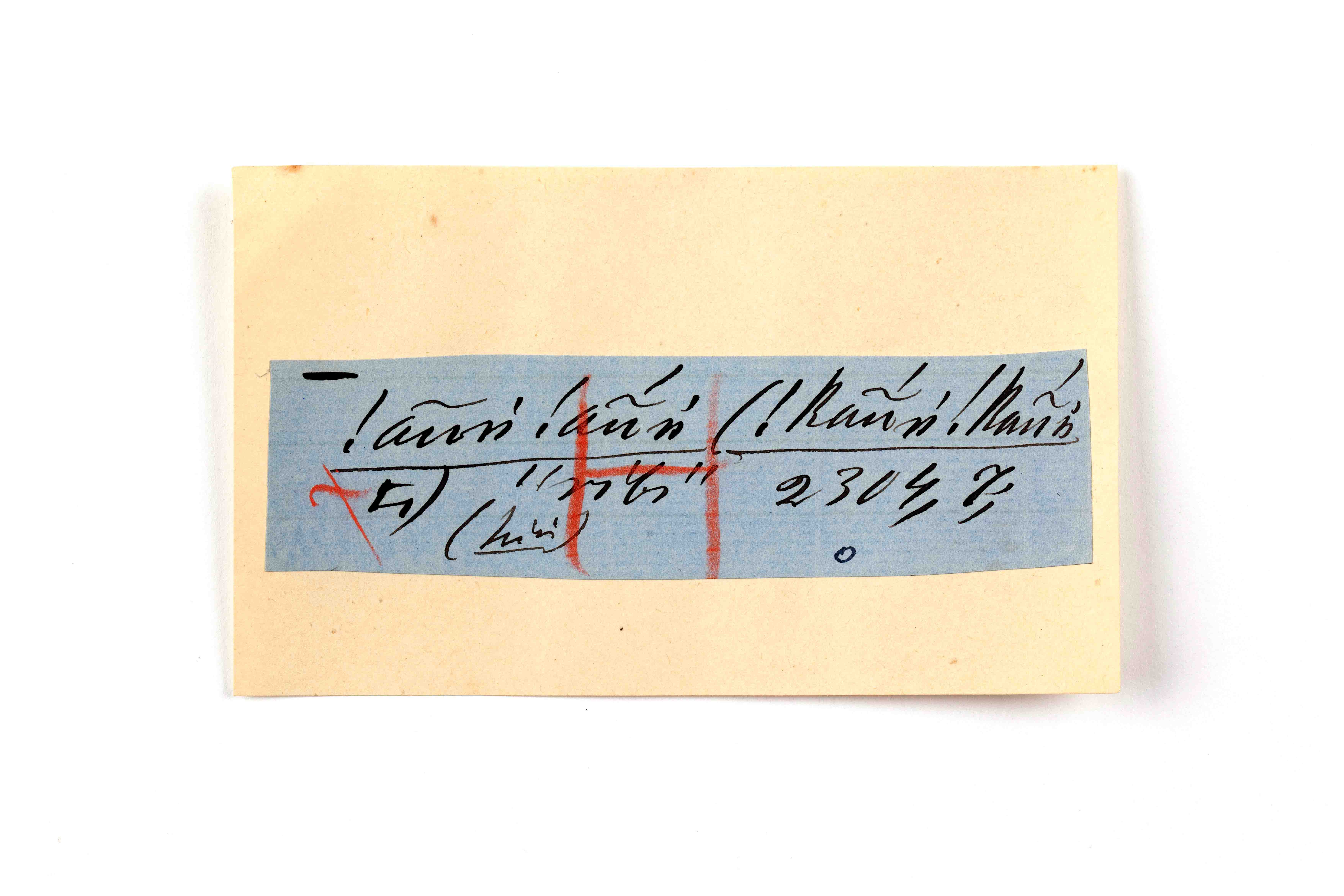 ink on blue paper glued on card