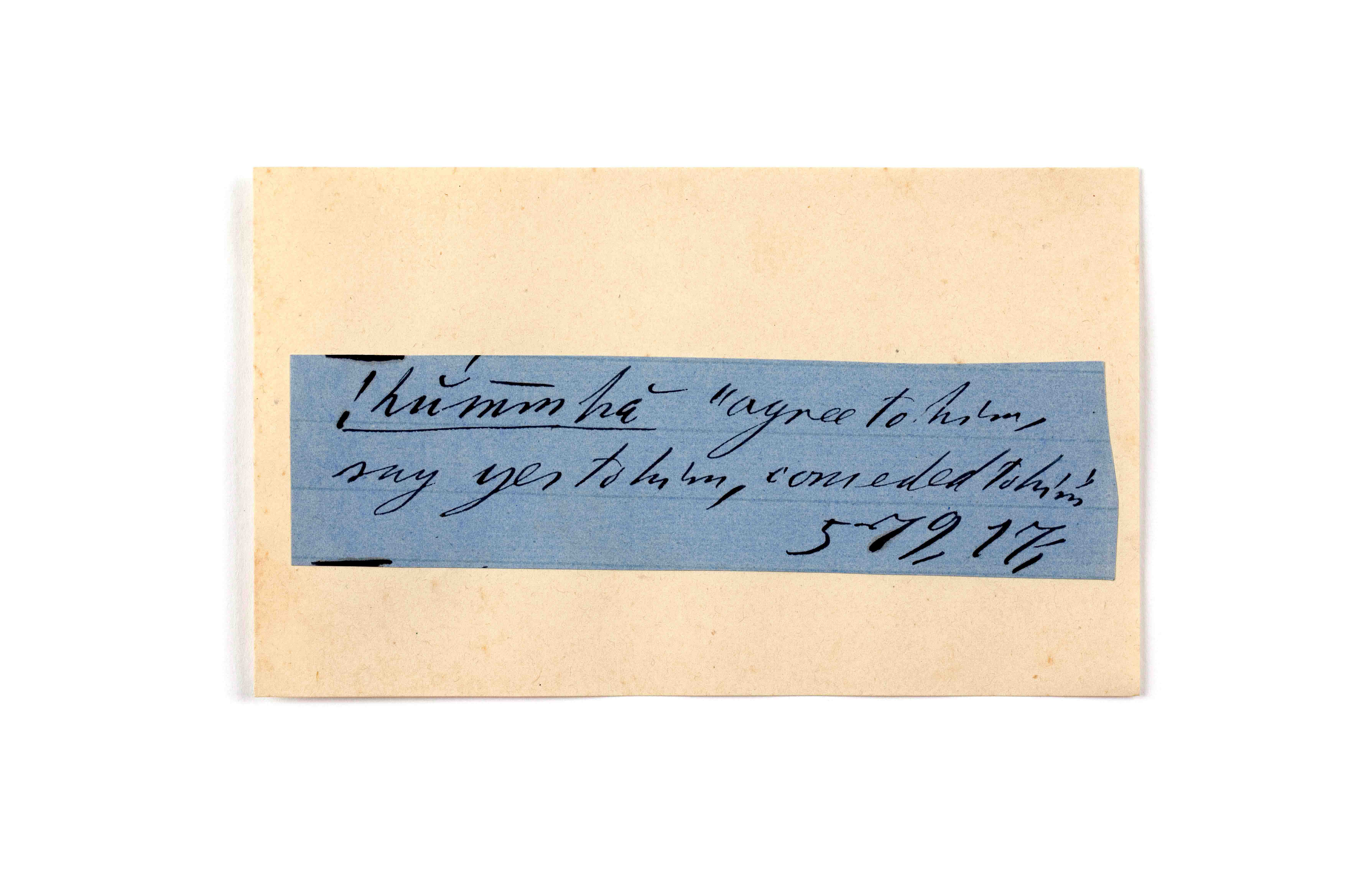 ink on blue paper glued on card