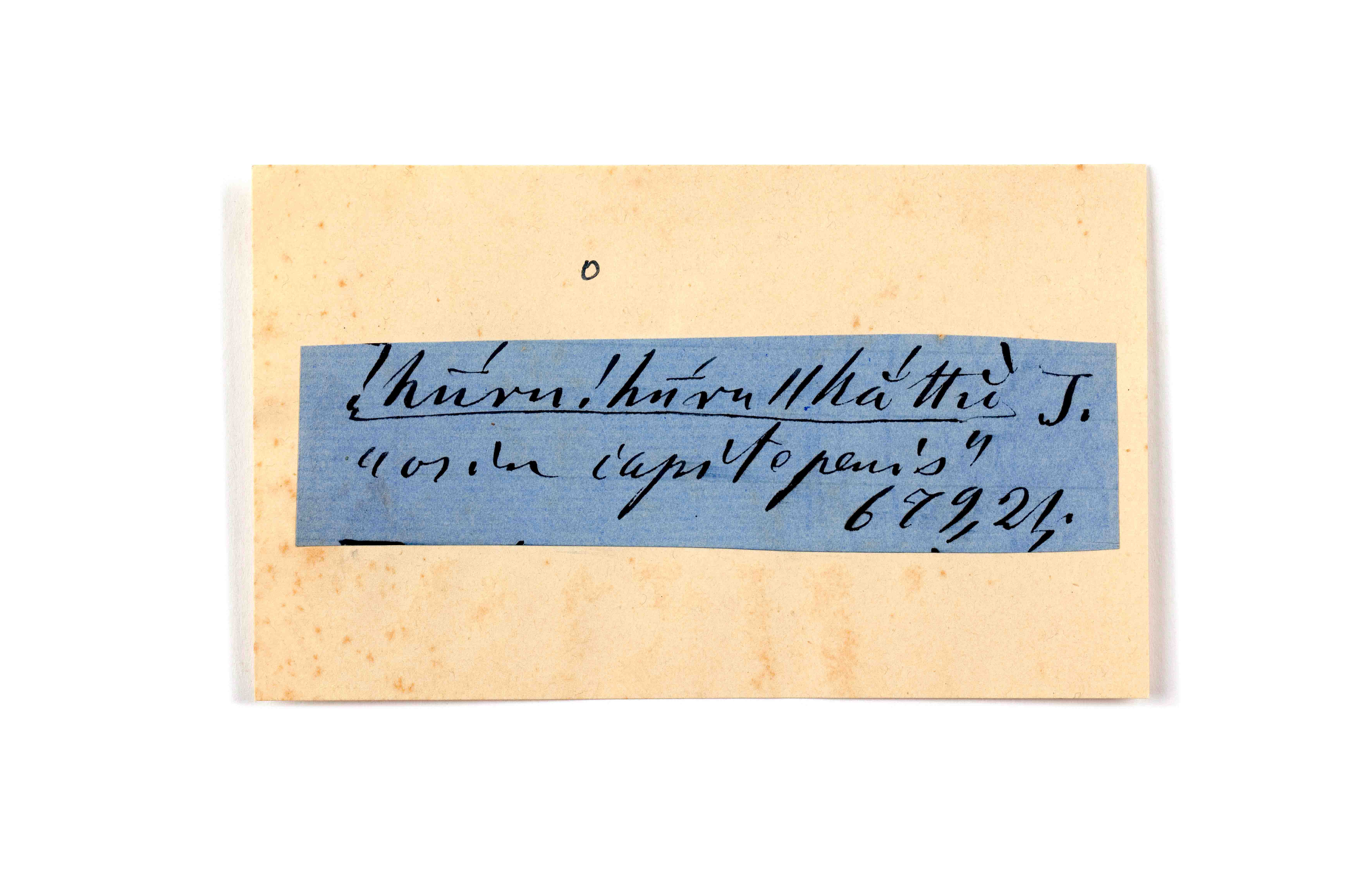 ink on blue paper glued on card