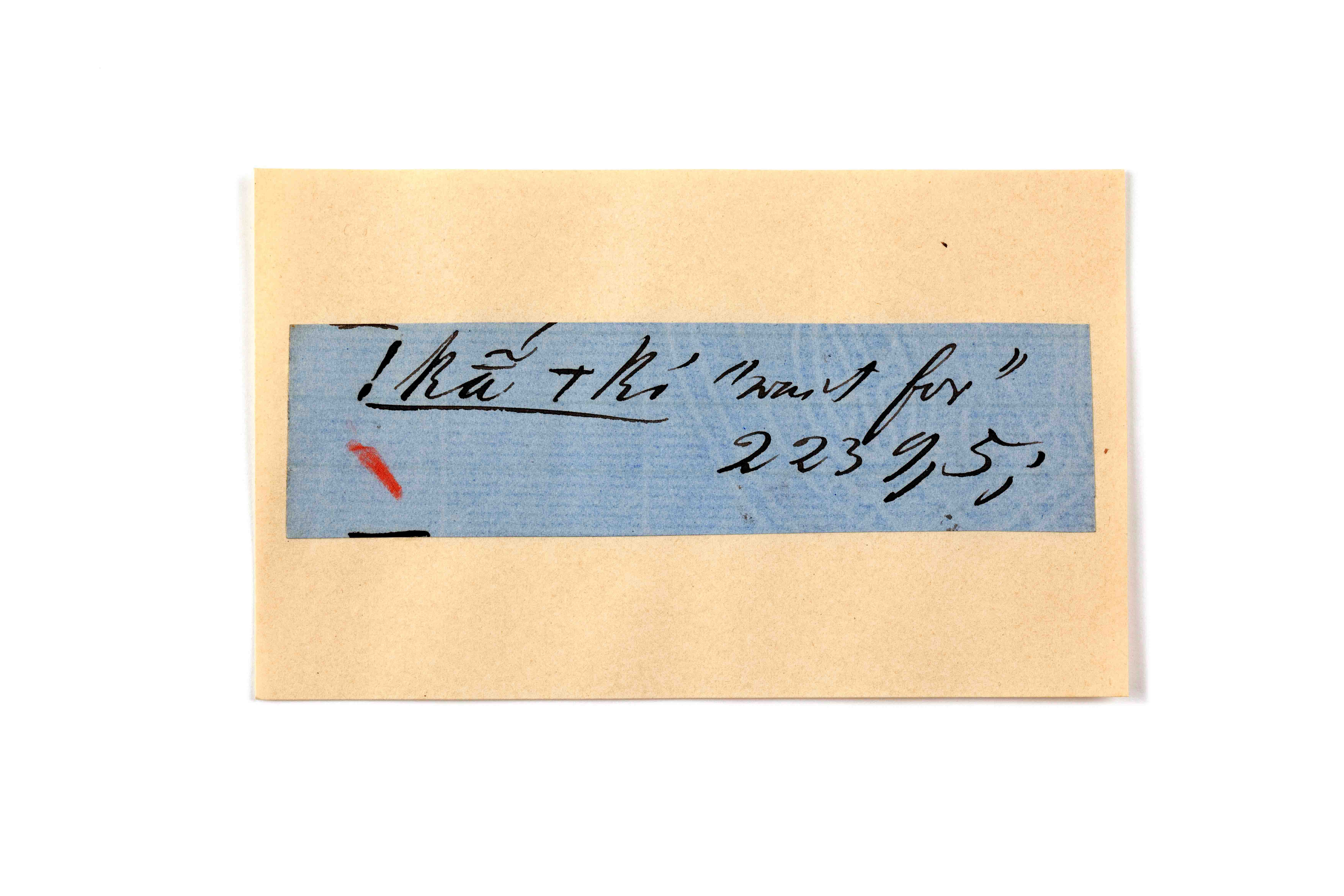 ink on blue paper glued on card