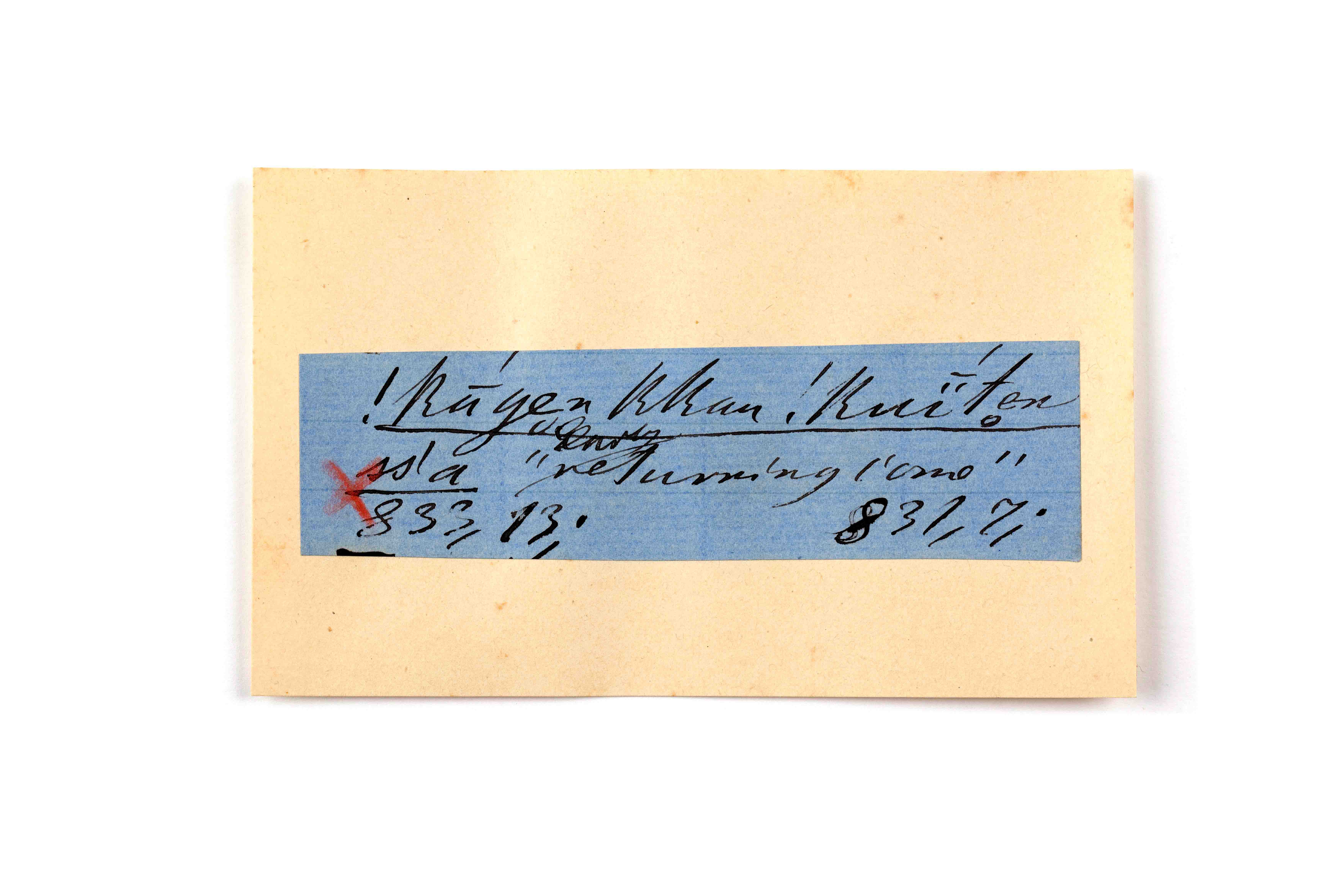 ink on blue paper glued on card