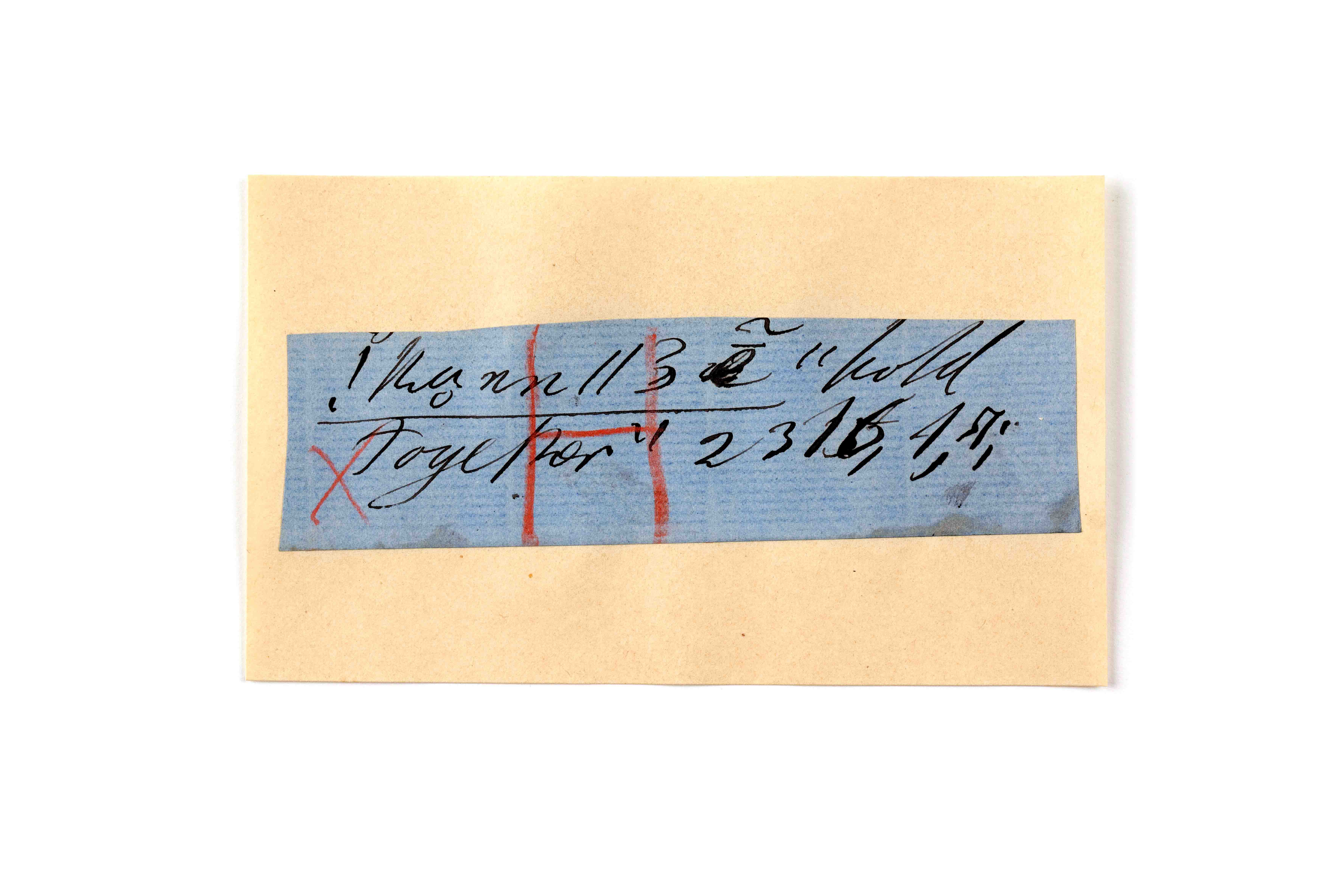 ink on blue paper glued on card
