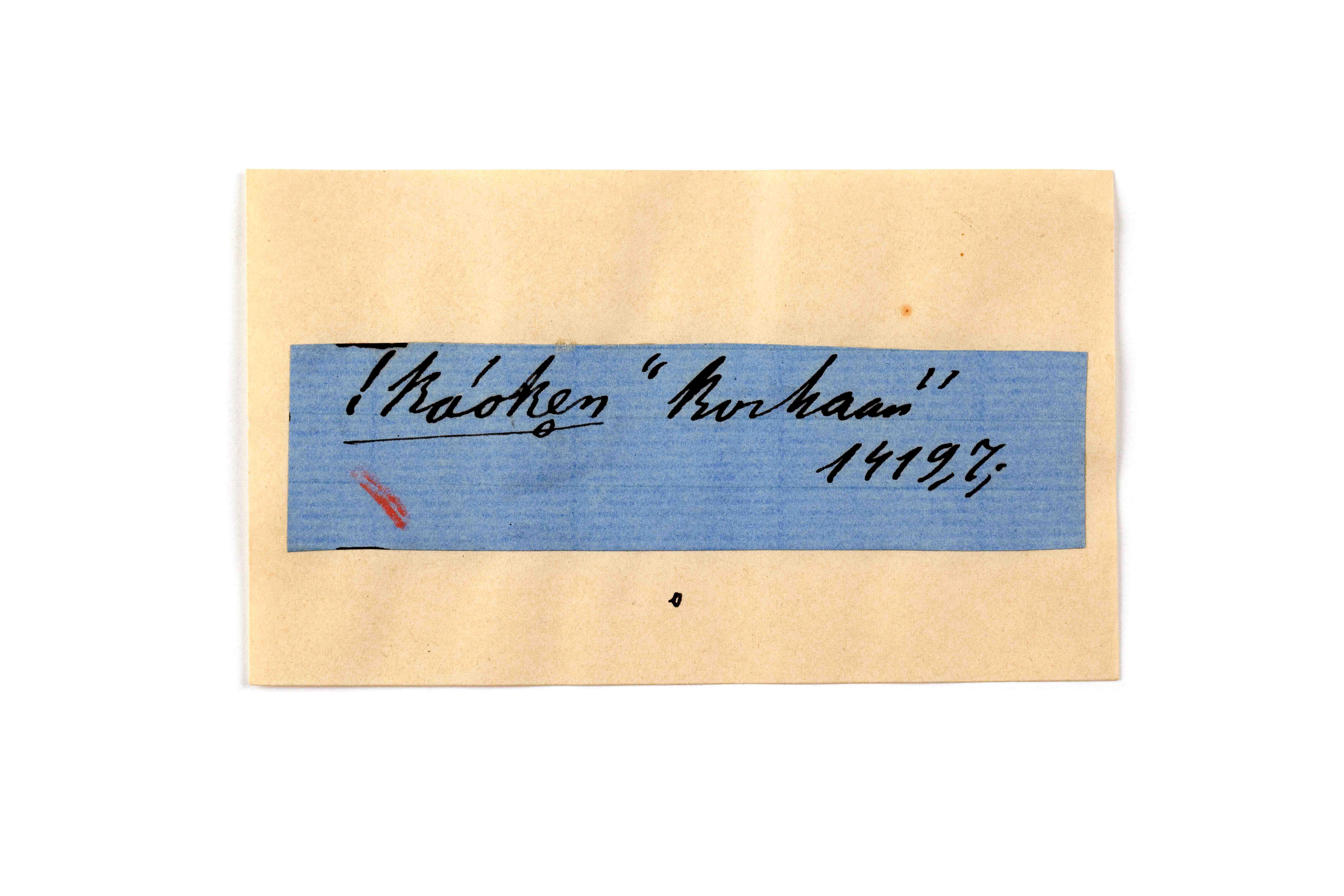 ink on blue paper glued on card