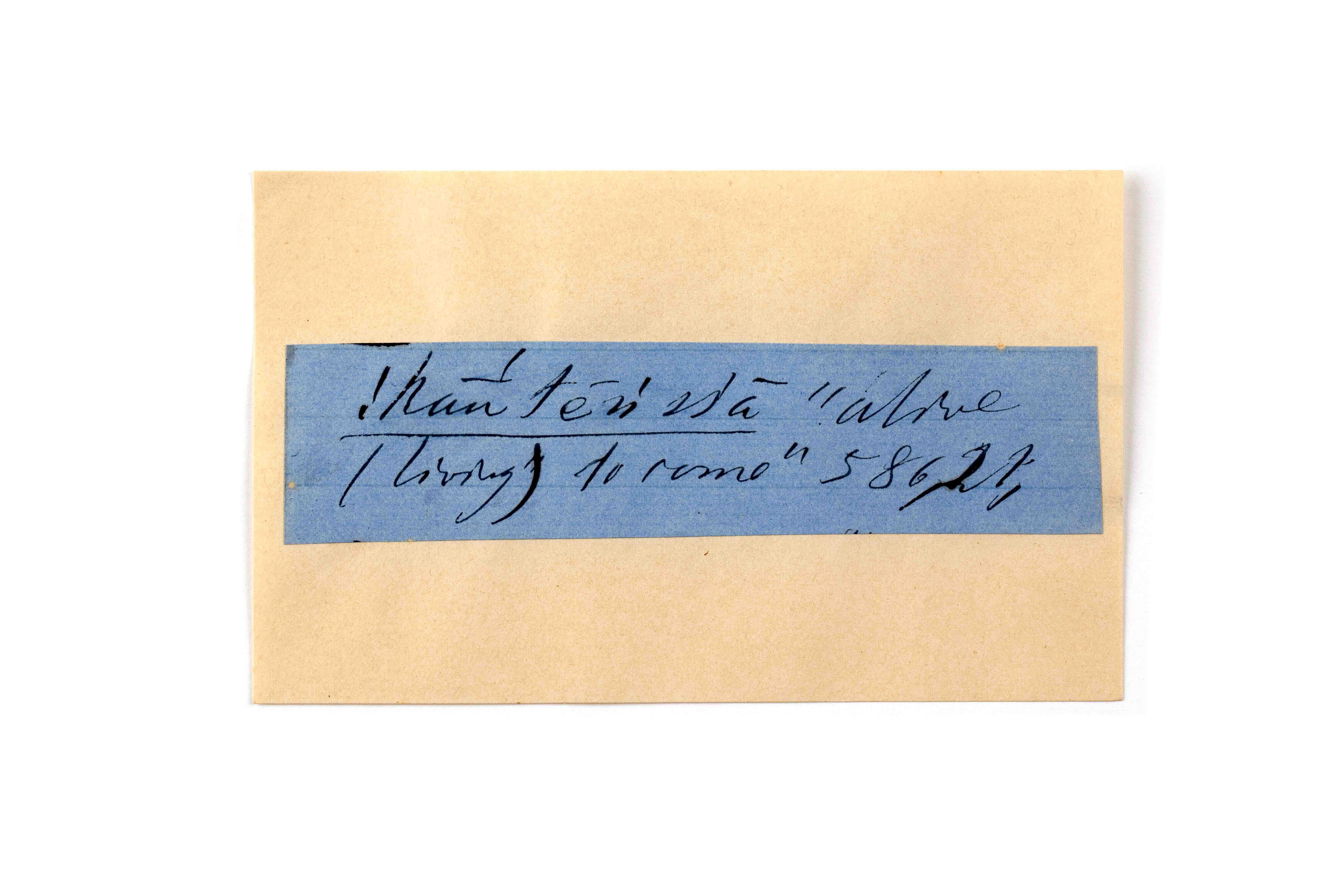 ink on blue paper glued on card