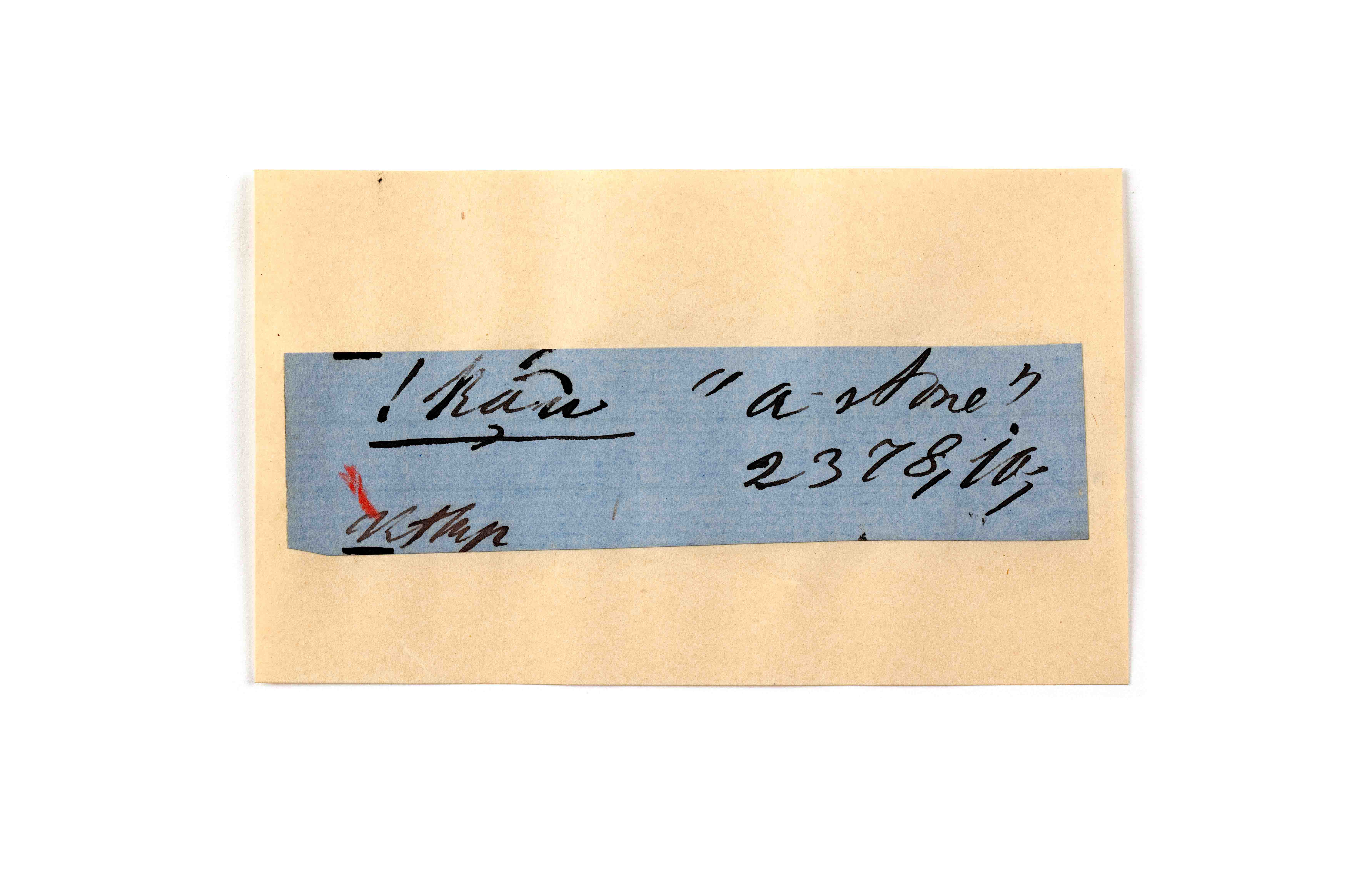ink on blue paper glued on card