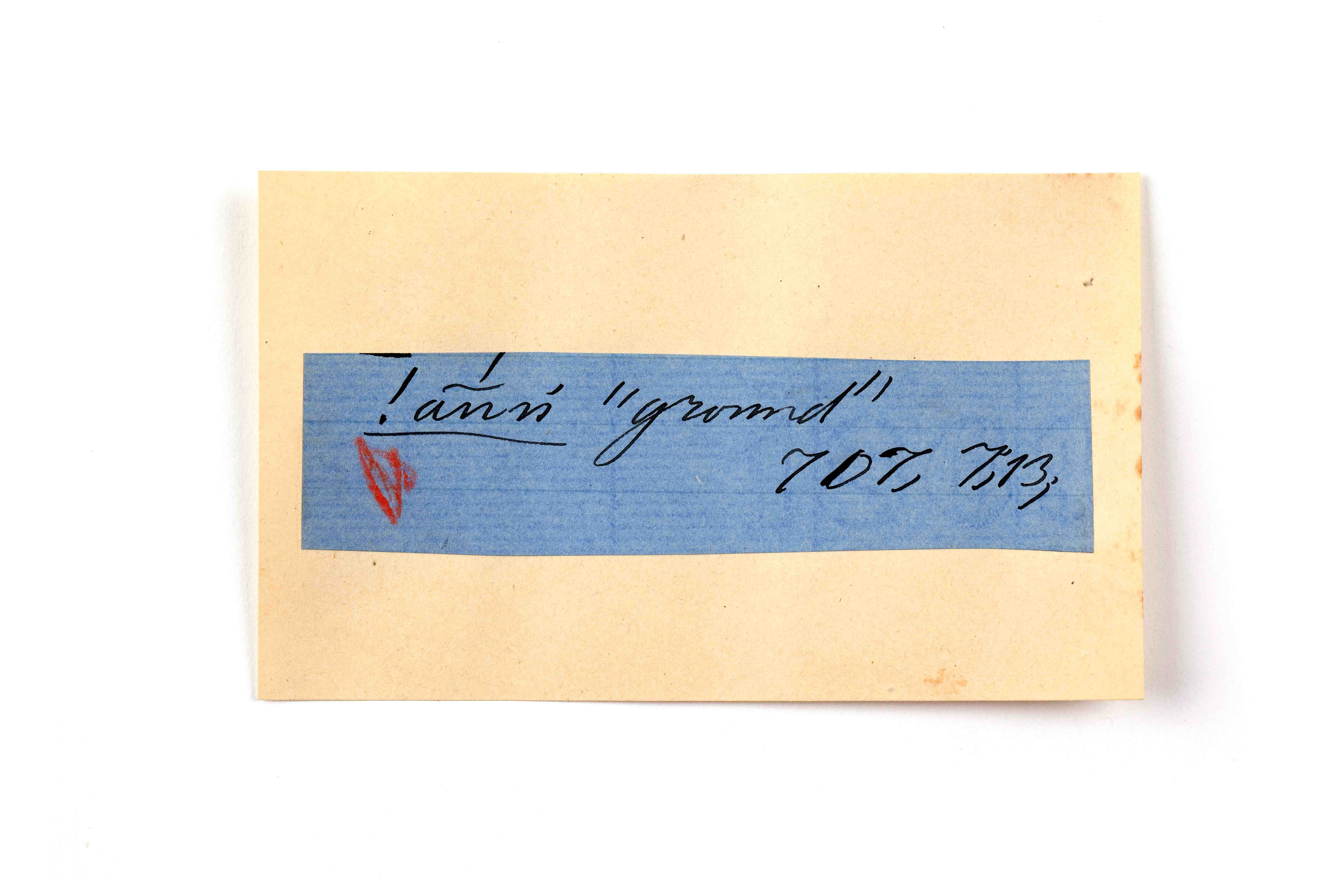 ink on blue paper glued on card