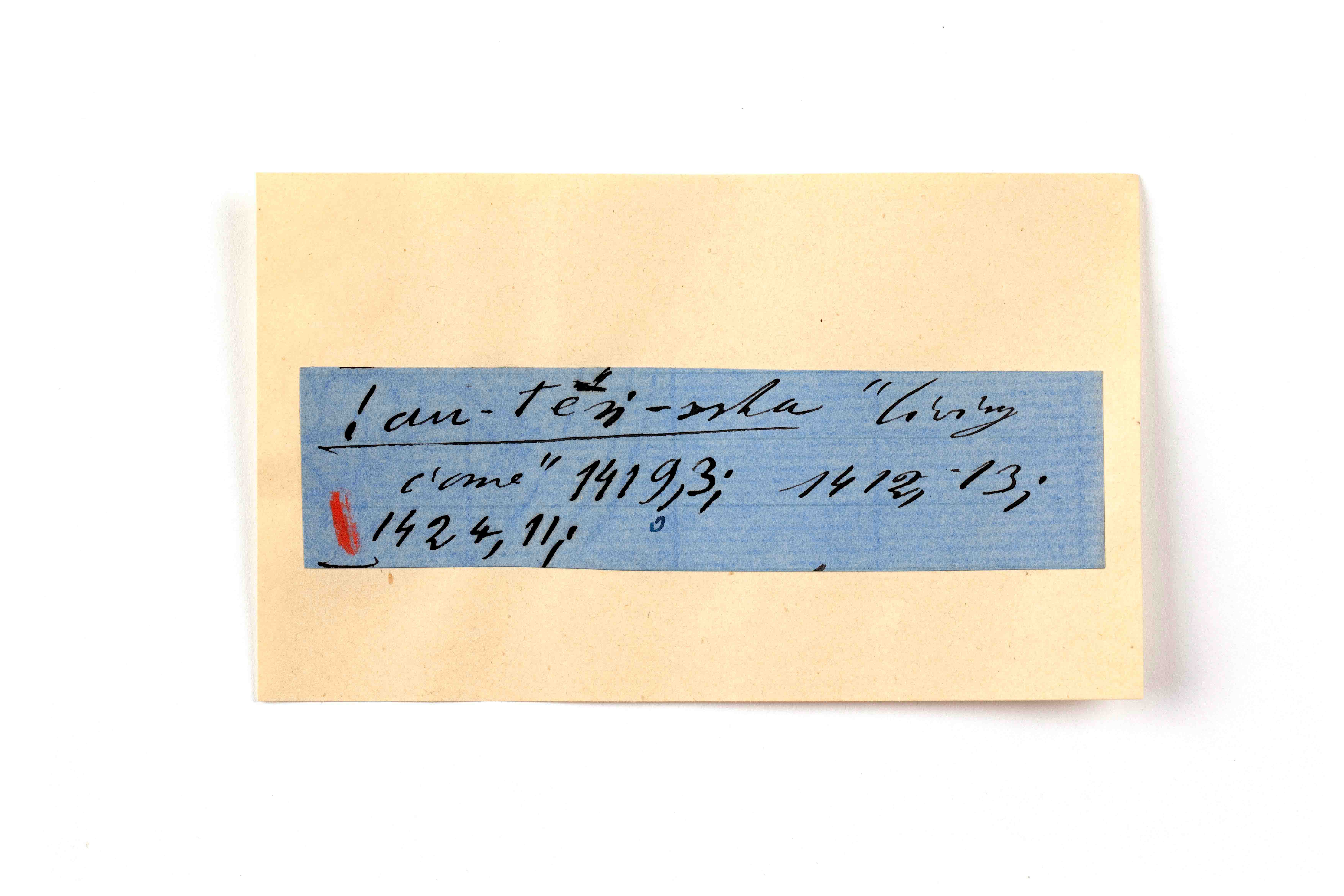 ink on blue paper glued on card