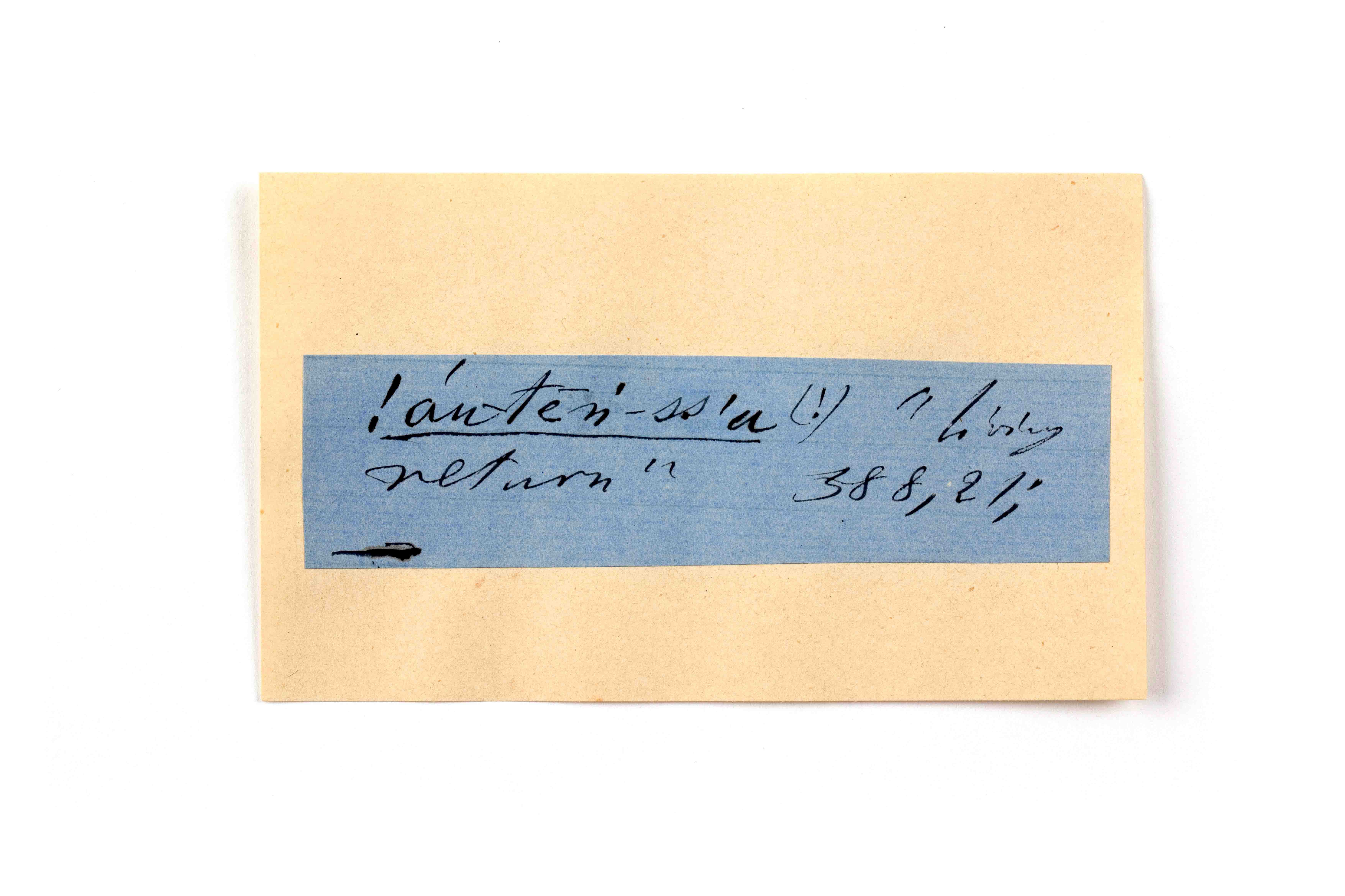 ink on blue paper glued on card