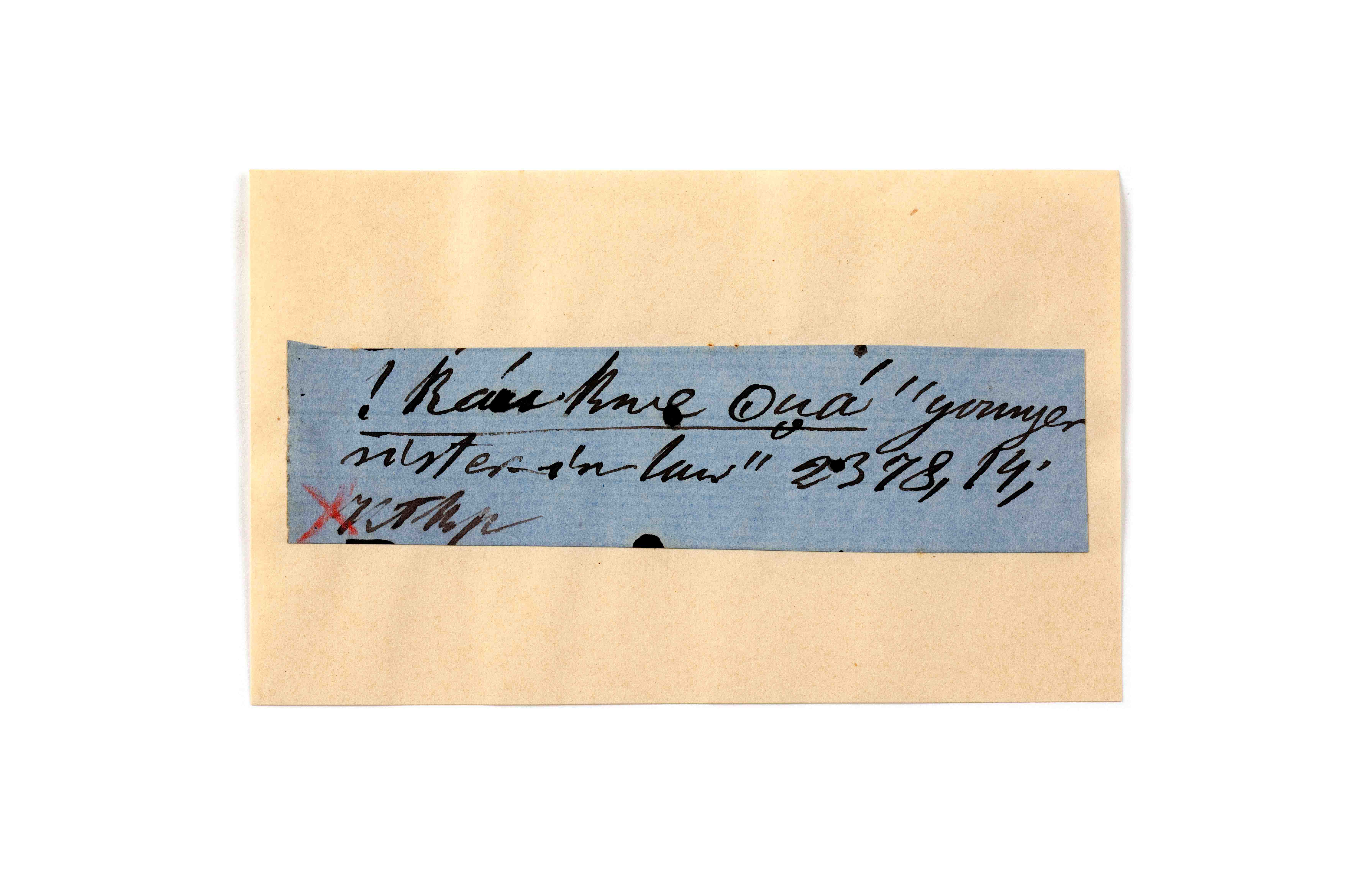 ink on blue paper glued on card