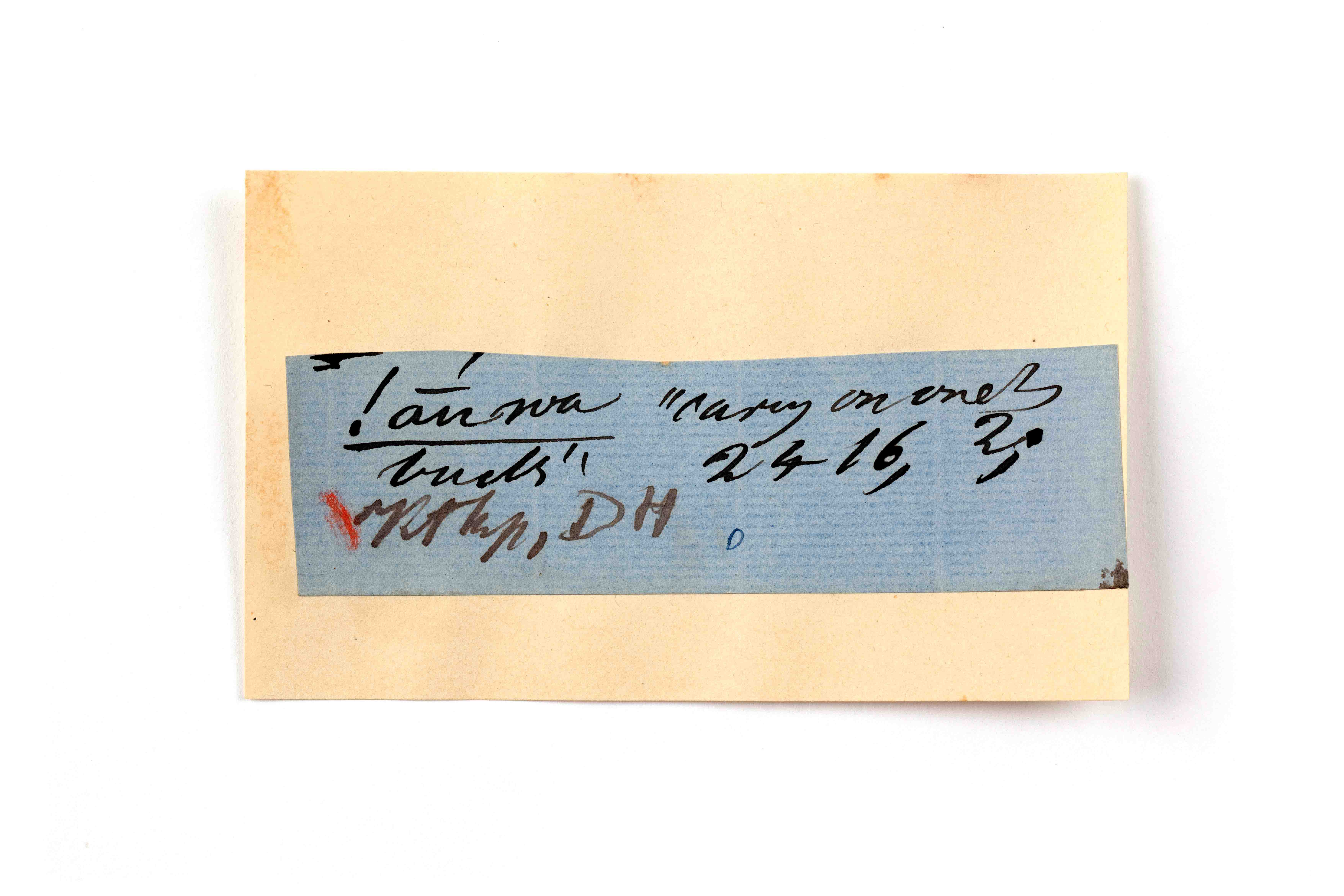 ink on blue paper glued on card