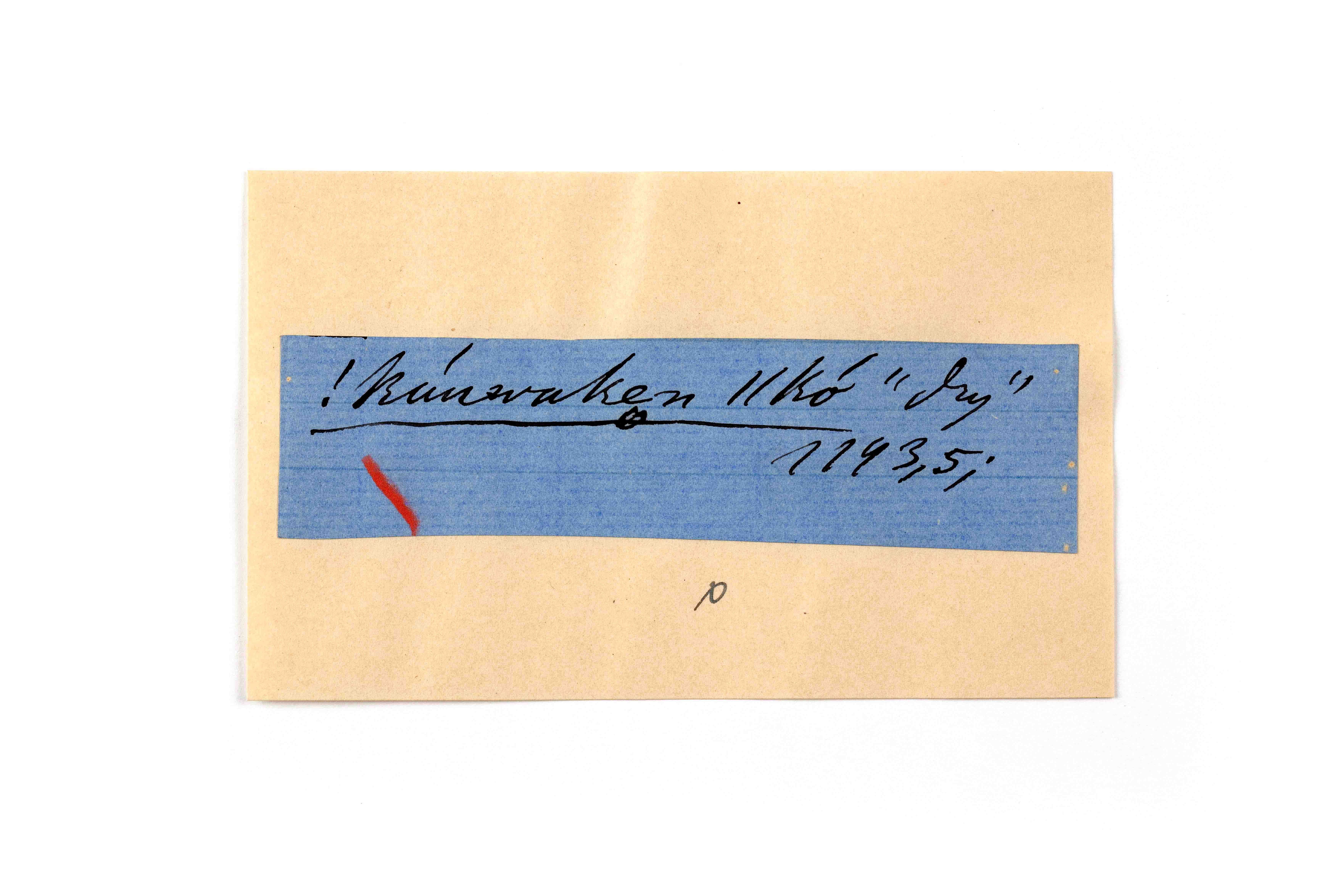 ink on blue paper glued on card