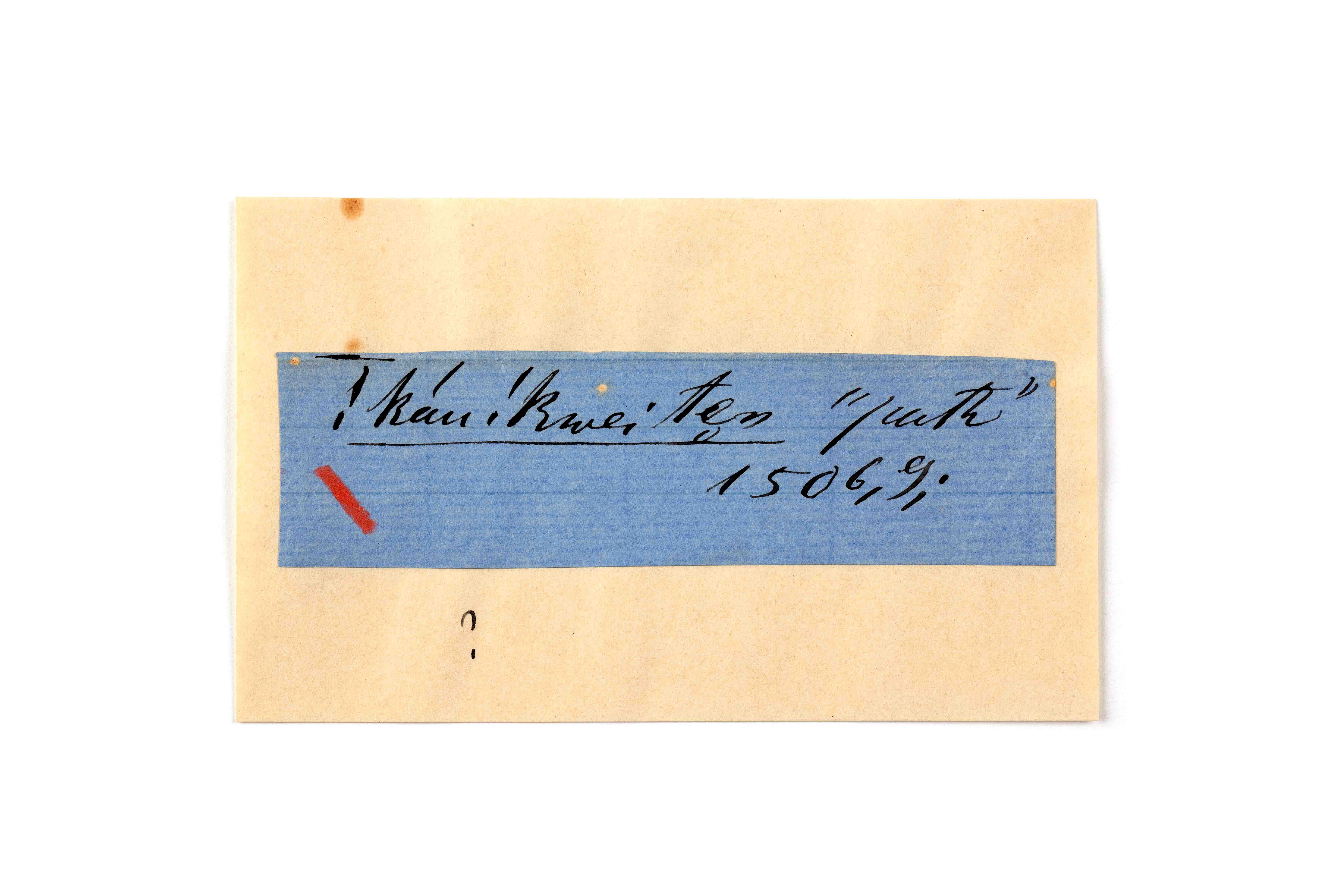 ink on blue paper glued on card