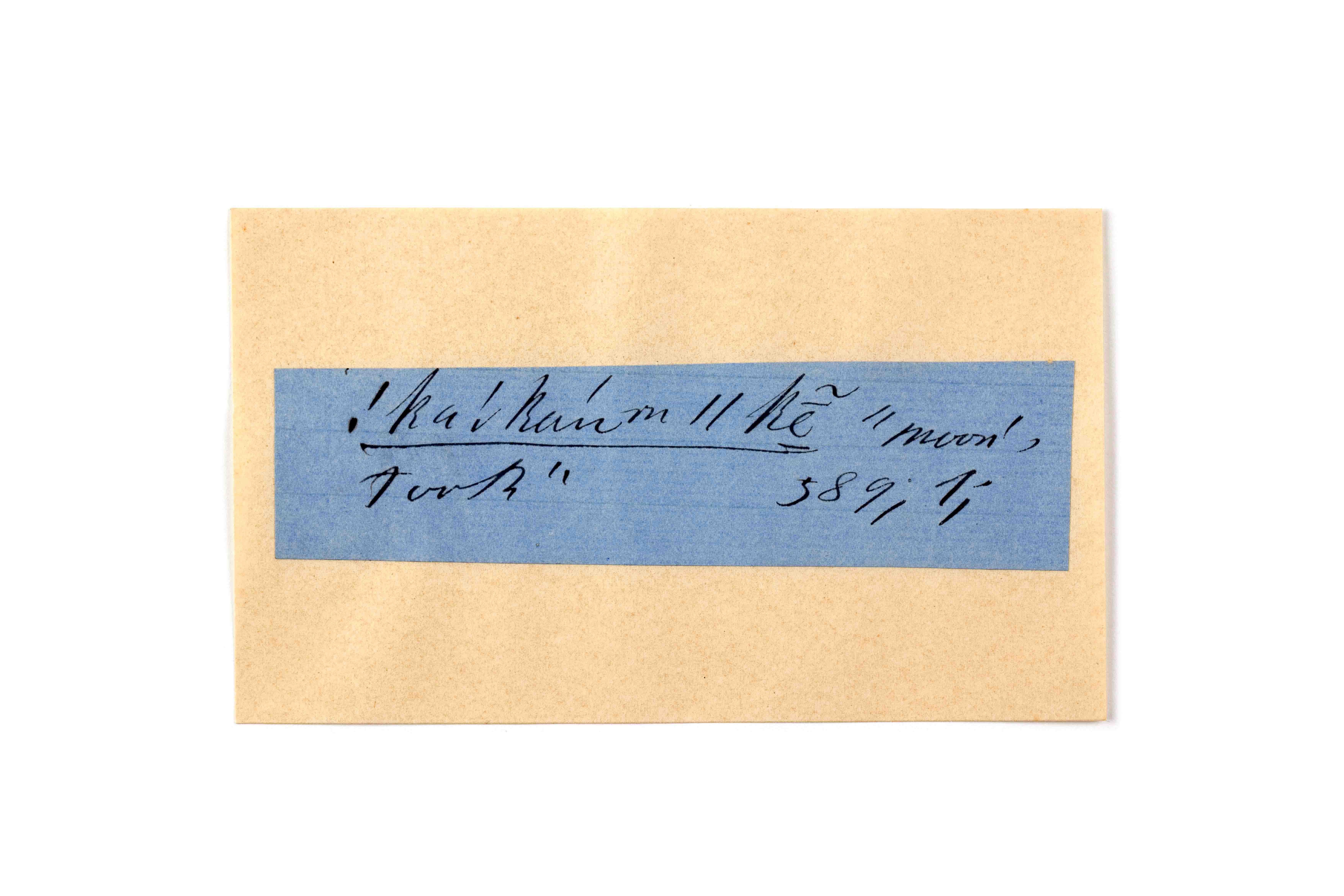 ink on blue paper glued on card