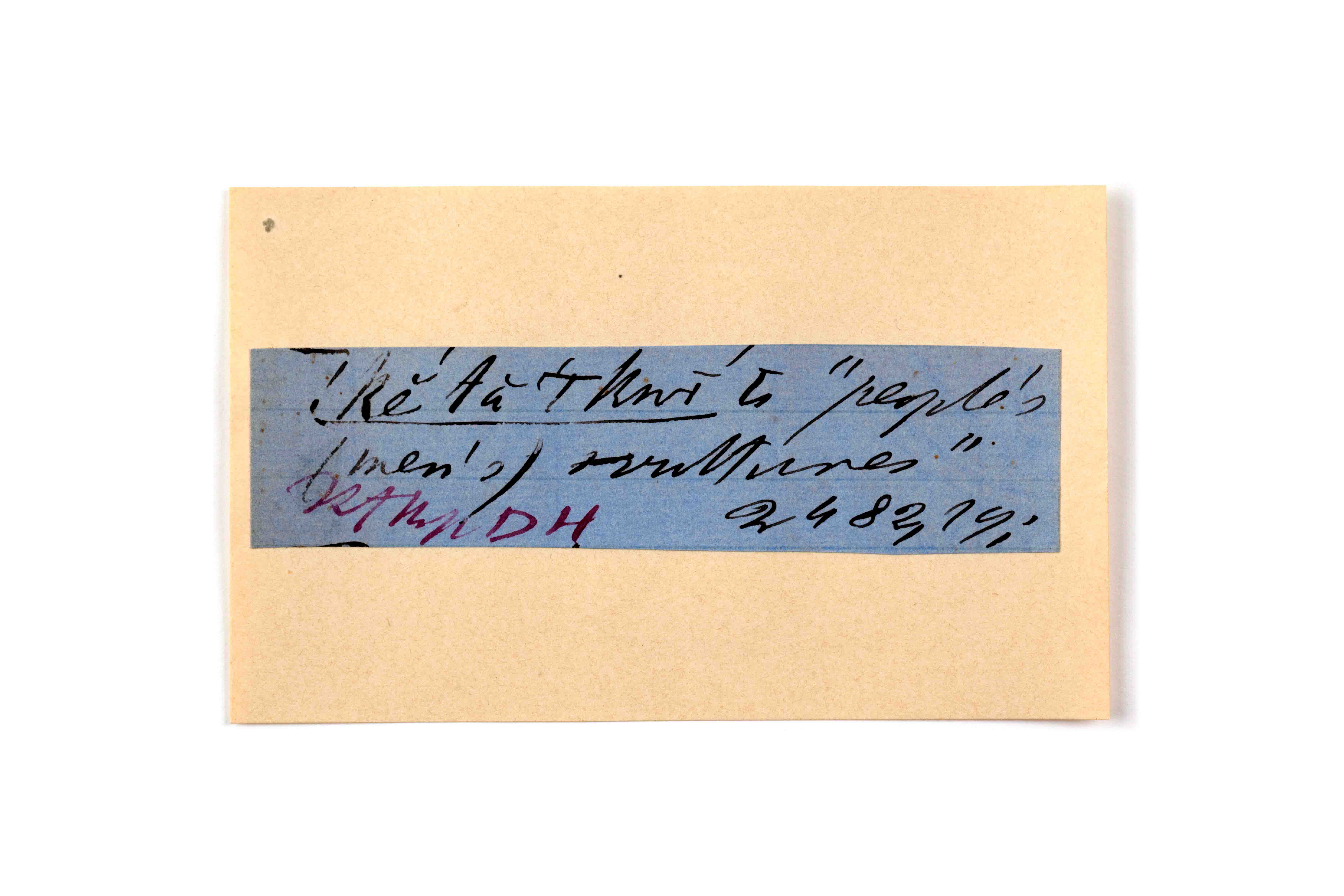 ink on blue paper glued on card