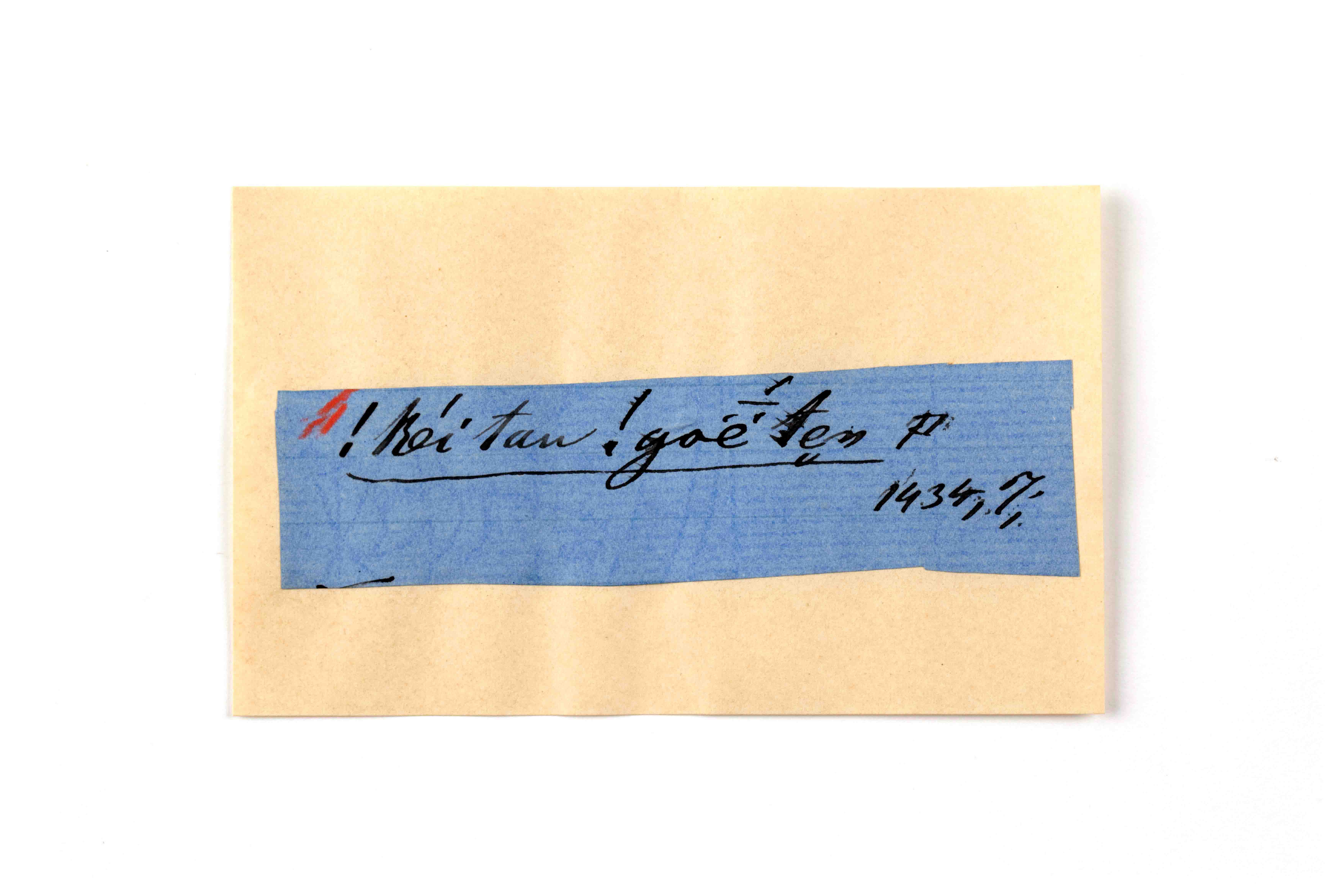 ink on blue paper glued on card
