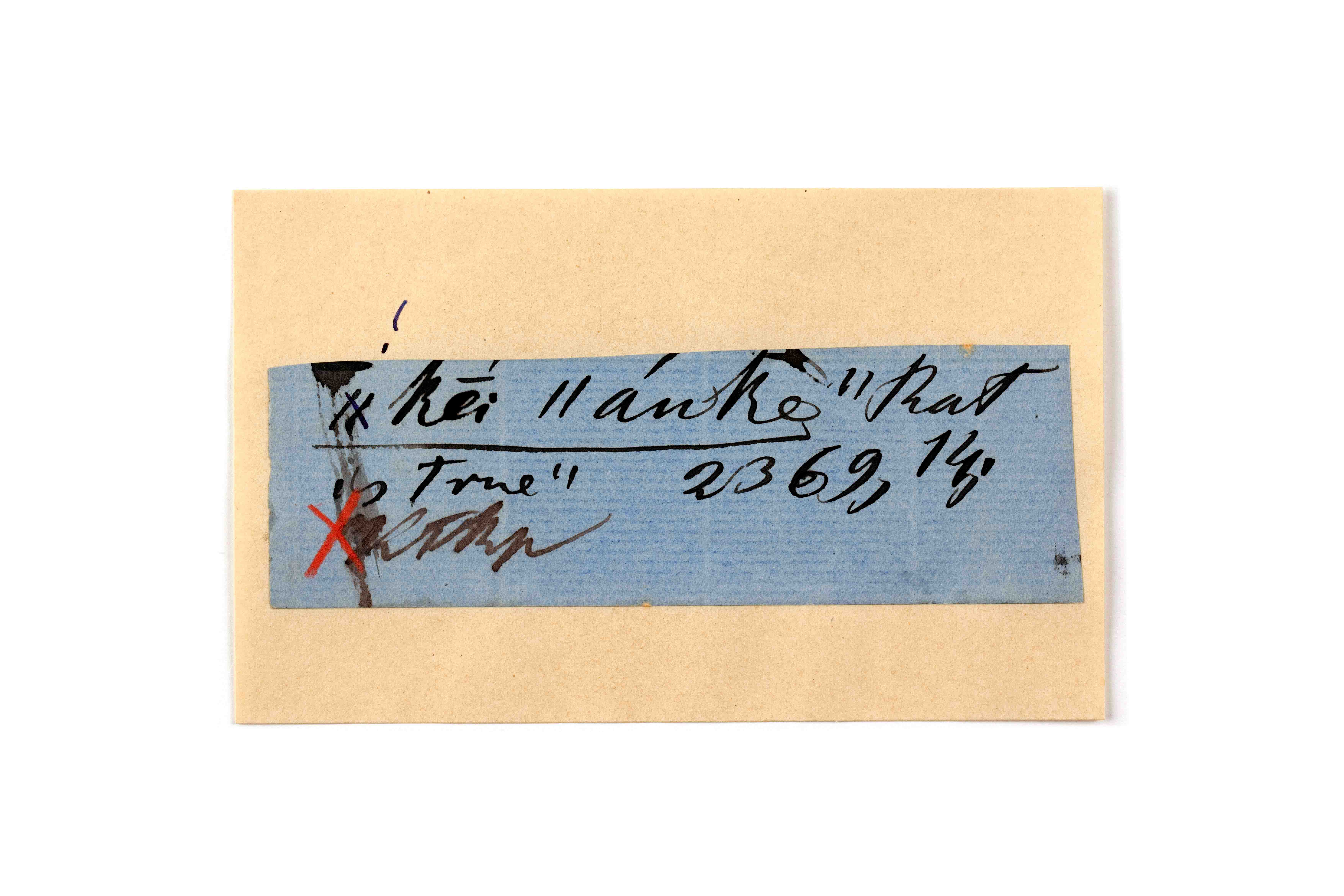 ink on blue paper glued on card
