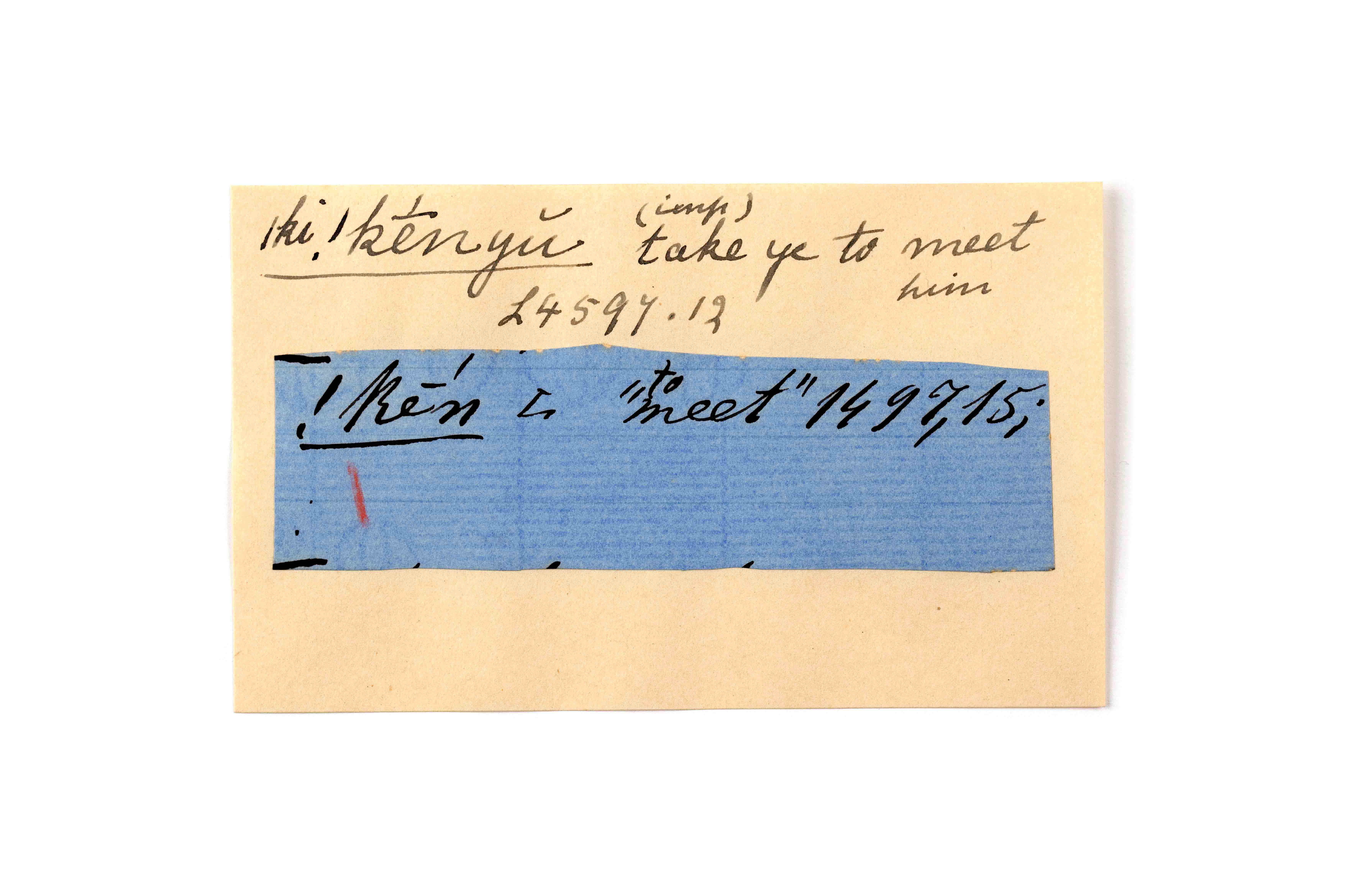ink on blue paper glued on card